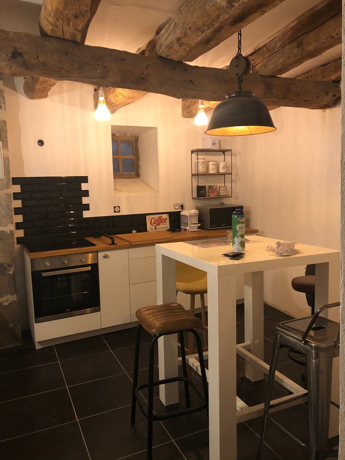 Aquí el temps s'atura, la calma regna i cada detall està dissenyat per al teu benestar. Aquest antic graner, situat al cor dels paisatges preservats d'Auvèrnia, s'ha transformat en un refugi de dolçor, combinant l'encant de la pedra vista i el confort modern. A l'Hameau des Volcans, gaudiràs d'una vista excepcional dels turons des del moment que et lleves, i la terrassa protegida es converteix en l'espai ideal per esmorzar o prendre un aperitiu a l'aire lliure. Què gaudir sense parar del cha