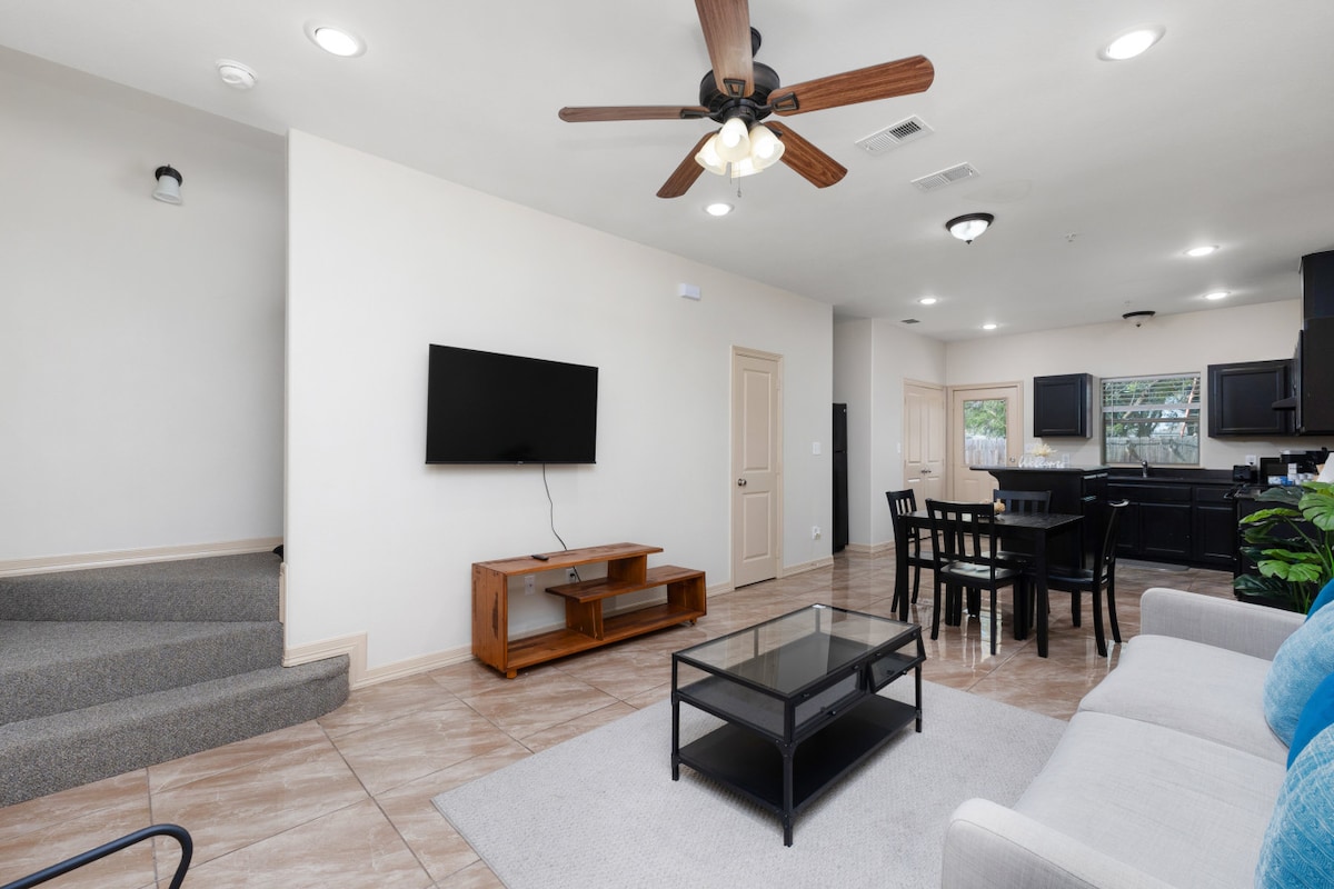 Casa unifamiliar ✅cèntrica de dues plantes a prop de totes les atraccions més importants de McAllen, com ara el camí a peu del segon carrer. Només necessites 5 minuts en cotxe per arribar al centre comercial La Plaza i a l'aeroport internacional McAllen Miller. Condueix 9 minuts i estaràs al centre de Mcallen i en 10 minuts arribaràs a Top Golf i a totes les botigues que l'envolten, com Sam's, Walmart, Target i Ross. Televisors Roku a totes les habitacions amb HBO Max, Netflix, Prime Video, ESPN+ accés per al màxim entreteniment