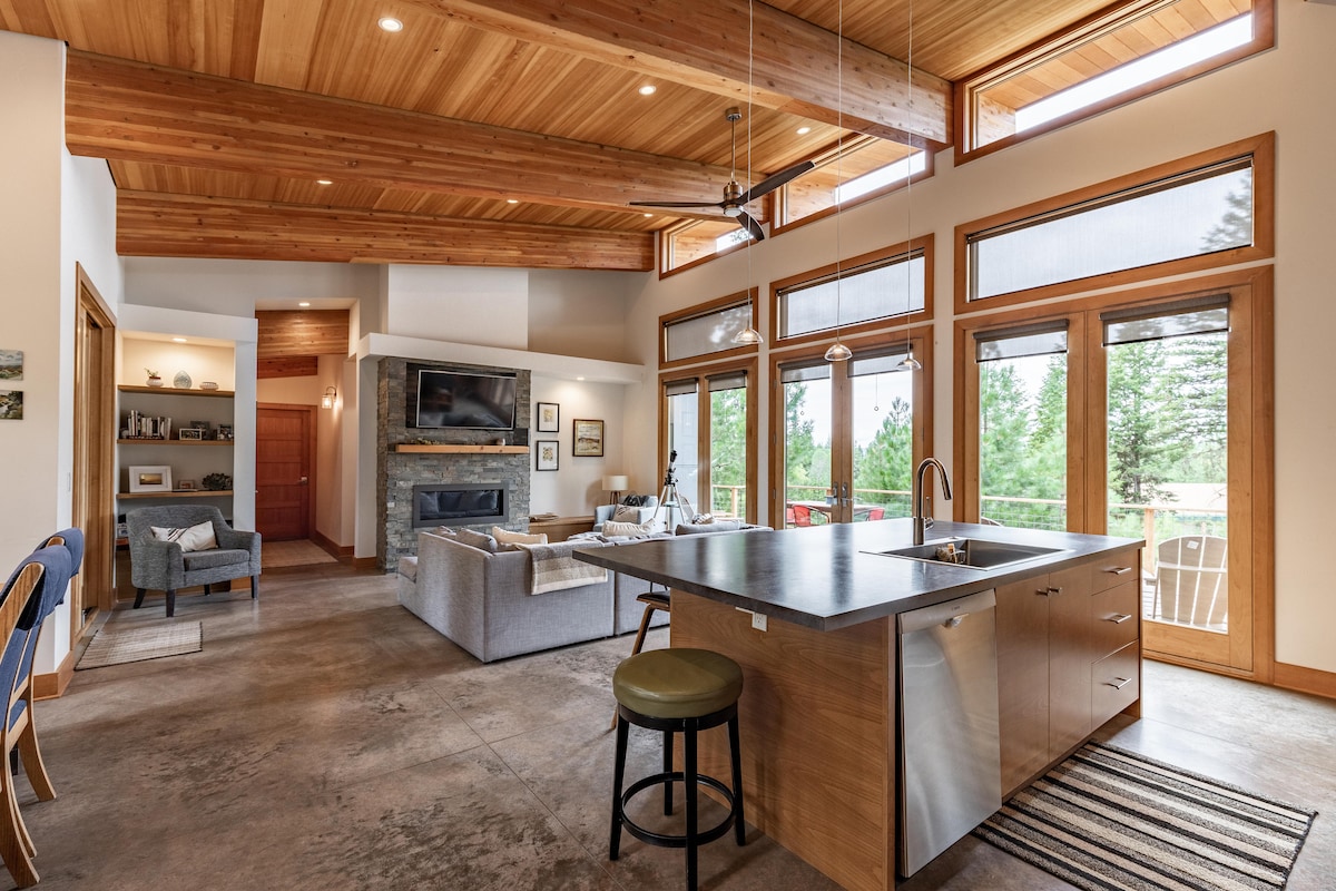 Apartament de luxe al llac, recentment remodelat amb un entorn romàntic, vistes excepcionals i comoditats modernes. Televisor gran de 65"amb YouTube TV i els teus comptes. Llar de foc lineal, calefacció per terra radiant a tot arreu, acollidora i còmoda. Il·luminació intel·ligent controlada per altaveus, electrodomèstics moderns i d'estil euro, banyera gran amb aigua calenta sense fi. La vista des de la teva terrassa és increïble. La piscina a la platja a l'estiu i la natació al llac és la millor. Incendi i petites al costat del llac... Vine a crear records. Ah, McCall