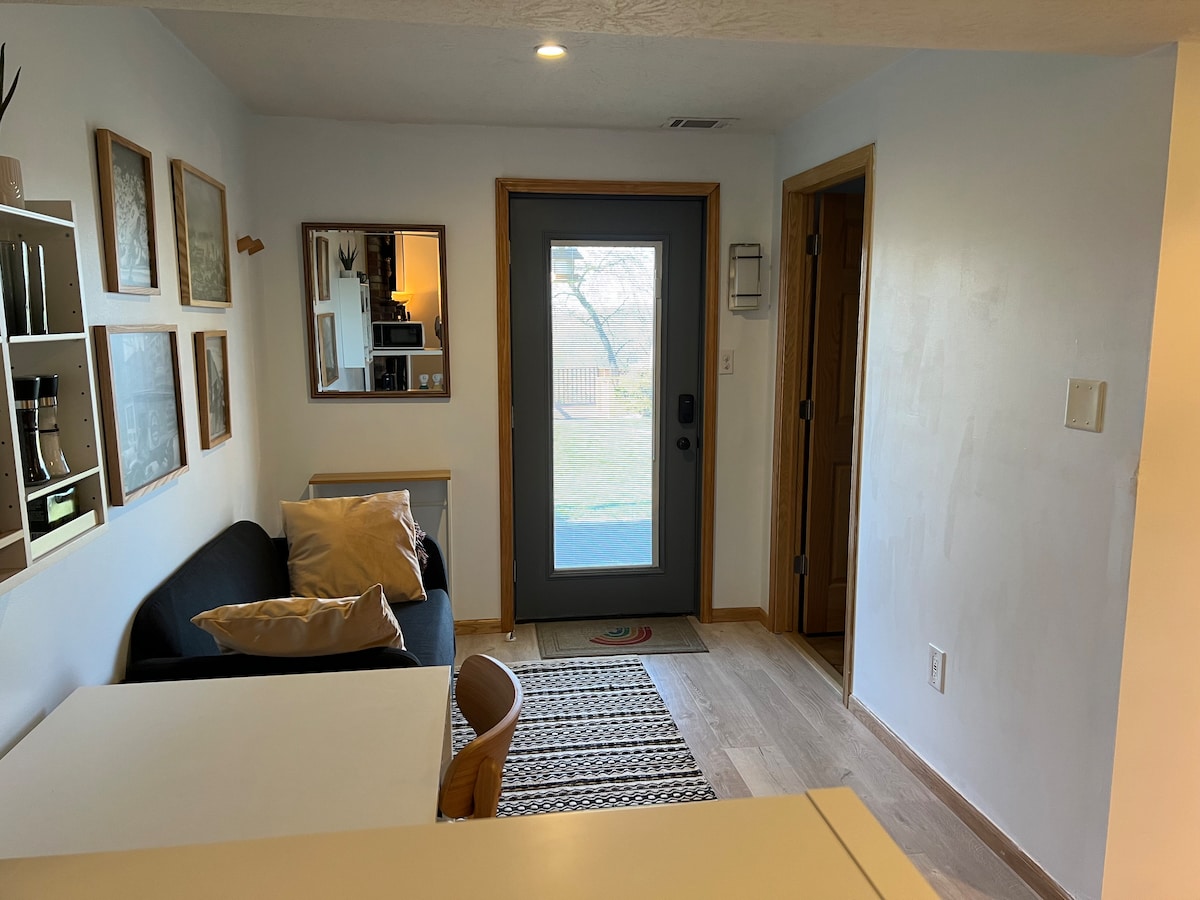 La suite té la seva pròpia entrada a la part posterior de la casa i aparcament a la calçada. Estàs en la teva pròpia zona PRIVADA que no s'uneix a la meva zona d'estar de cap manera; és probable que mai ens trobem. L'espai està molt actualitzat i net. Els serveis inclouen bany privat amb dutxa de luxe, minicocina amb fogons i nevera, una petita taula de menjador, un sofà i un llit còmode de mida queen. És a uns 15 minuts de totes les universitats principals, del centre de la ciutat i de tots els estadis esportius.