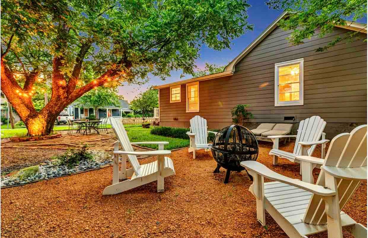 AirBnB “Guest Favorite!” One block from one of the most fabulous Historic downtowns in Texas! Sweet special place for your special getaway! You will love this charming cottage for so many reasons- location of course but then you will love the details that make this place so comfy-2 king beds, 1 queen,1 twin +sleeper sofa, comfortable living w 55" smart tv wifi, well equipped kitchen, spacious dining area plus cozy kitchen nook, bonus room, laundry & FABULOUS front & back stone patios & Firepit!