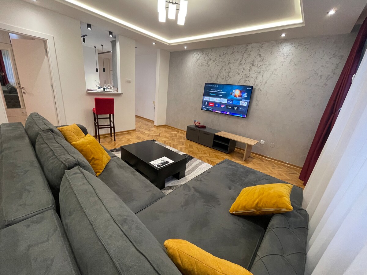L'apartament està situat en un barri tranquil prop del centre comercial BEO i de molts restaurants, menjar ràpid, cafès i mercats, i està molt ben connectat amb el centre de la ciutat amb transport públic gratuït. Els supermercats (Lidl, Maxi, Aman) es troben a 5 minuts a peu. Al centre de la ciutat, necessitaràs entre 10 i 15 minuts. Hram Sv. Sava, Belgrade Waterfront i el Museu Nikola Tesla són a 10 minuts amb cotxe. L'apartament està acabat de renovar amb tocs elegants. Està equipat amb tots els electrodomèstics necessaris.