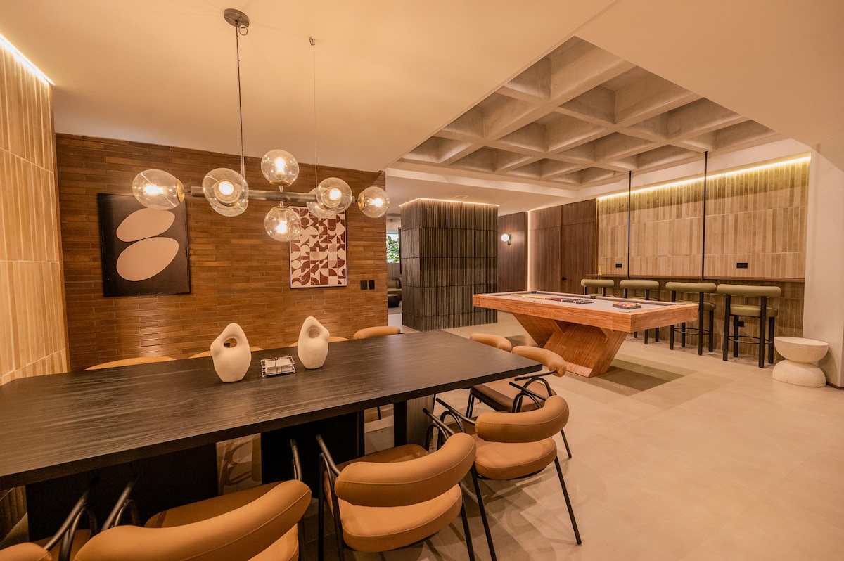 Descobreix l'encant de Medellín des d'aquest espaiós allotjament d'estil colombià situat al cor d'El Poblado, el barri més exclusiu i vibrant de la ciutat. Perfectament situat a només 5 minuts a peu del centre comercial El Tesoro, tindràs botigues de gamma alta, cafeteries i supermercats a l'abast de la mà. També a poca distància a peu hi ha Amsterdam Plaza, on trobaràs alguns dels millors restaurants i boutiques de Medellín, ideal per a un sopar tranquil. A més, Provenza i Parque Lleras són a només 5 minuts amb cotxe.