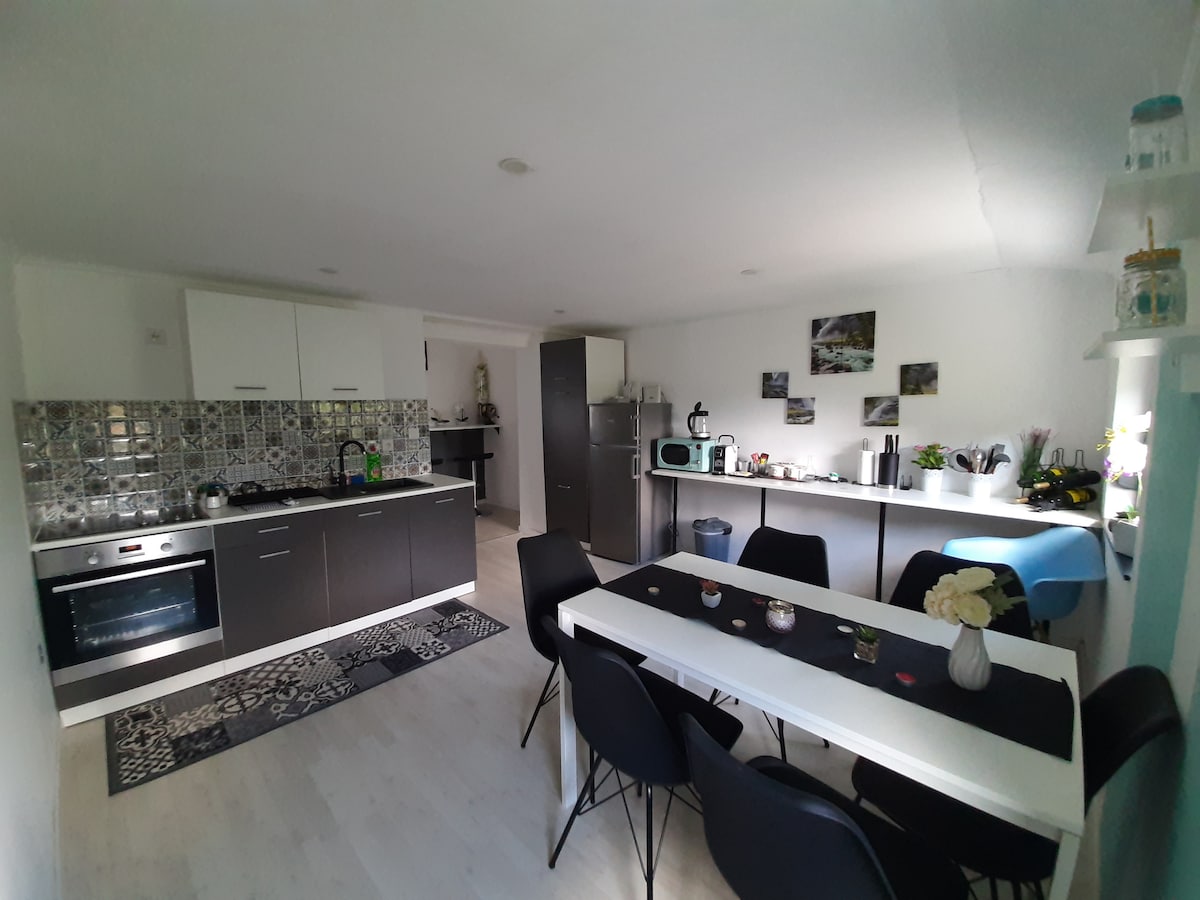 Escapa't a un refugi tranquil envoltat de natura, perfecte per a escapades relaxants. La nostra acollidora casa de vacances combina la comoditat amb l'experiència a l'aire lliure, i disposa d'una zona d'estar elegant, un espai privat a l'aire lliure i equipaments i serveis únics dissenyats per a la diversió i la relaxació. Tant si gaudeixes d'una nit tranquil·la a la vora del foc com si explores la natura de la zona, aquest és el lloc ideal per relaxar-te i carregar les piles. Ideal per a parelles, grups petits o qualsevol persona que busqui una estada única i inoblidable.
