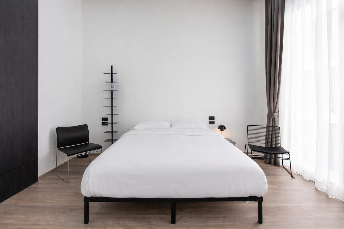 Dúplex de 2 dormitoris amb vistes panoràmiques de Bangkok. Els finestrals omplen l'espai de llum natural, mentre que l'interior modern d'estil japandi crea un ambient tranquil i elegant ideal per a parelles, famílies o viatgers de negocis. Cuina totalment equipada, àmplia sala d'estar amb televisor intel·ligent de 65" i balcó privat. Accés directe a un gimnàs i a un espai termal a la mateixa planta, a més d'una piscina al terrat i una terrassa per prendre el sol a sobre. A l'edifici hi ha un centre d'alimentació, cafeteries i un supermercat obert les 24 hores.