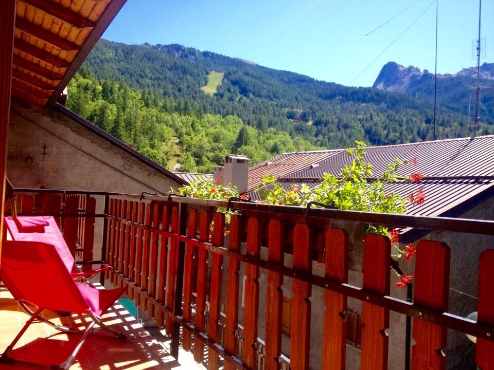 L'alloggio è in pieno centro in un bel complesso con giardino condominiale, portineria,a 50 metri dalla fermata del bus gratuito che porta alle piste e alla stazione ferroviaria. E' uno spazioso bilocale con camera da letto ,ampio soggiorno con divano letto doppio e poltrona letto, cucina separata da ante scorrevoli, bagno con vasca doccia.Ha una splendida vista sulle montagne e un ampio terrazzo soleggiato. Ha un comodo posto auto in garage e una cantina che funge da ski box.