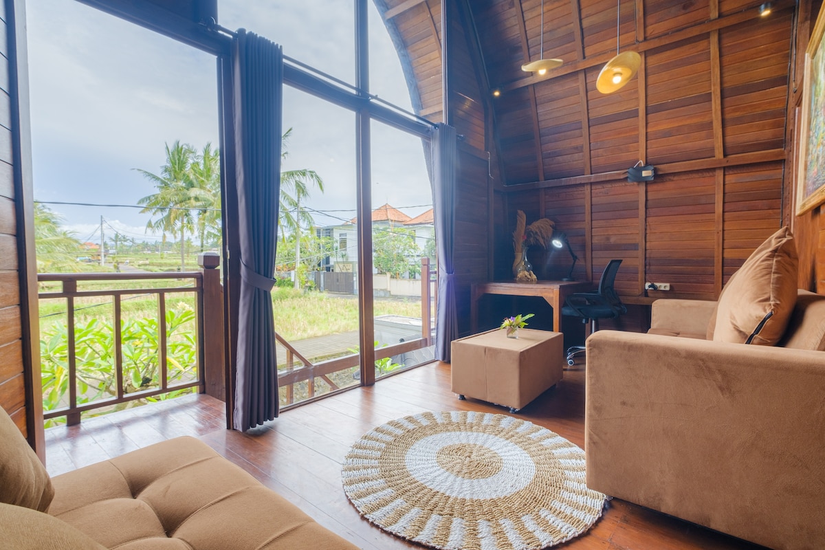 El nostre espai és una casa de fusta indonèsia anomenada Joglo. Aquest joglo ha estat dissenyat per artesans locals, construït amb materials locals i tècniques tradicionals. Assegut a la zona tranquil·la d'Ubud amb vistes a les granges d'arròs locals. Gaudeix de la veritable naturalesa de Bali. *L'edifici de la vil·la està al costat d'un camp d'arròs. Et preguem que et quedis si tens por d'insectes*