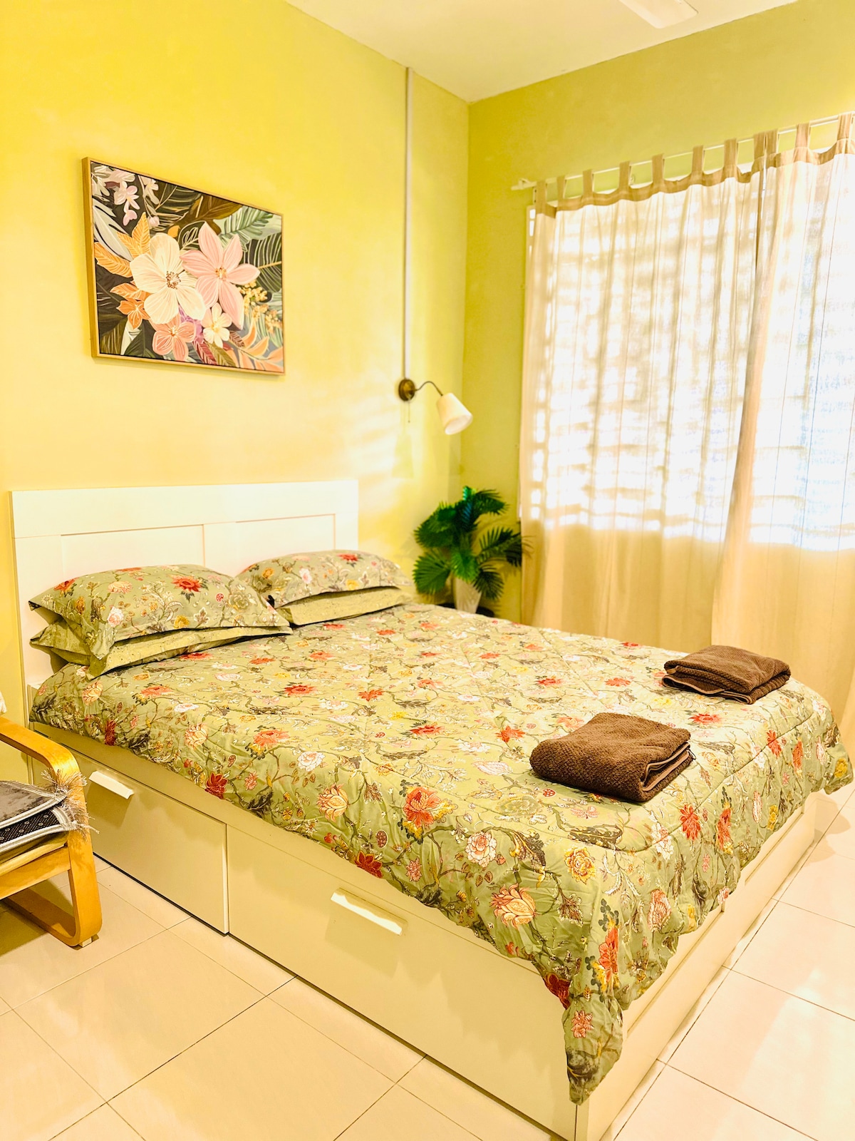 Bring the whole family to this great place with lots of room for eun 100% MUSLIM HOMESTYA and for MUSLIM ONLY Living Hal with Air-conditioning 3bedroom Master bedroom -Queen bed with conditioning + with fan 2nd bedroom -Queen bed +with fan 3rd bedroom -Single bed + with fan Television Dining area Washing machine One toilet Also provide shower gel,shampoo Kitchen Parking