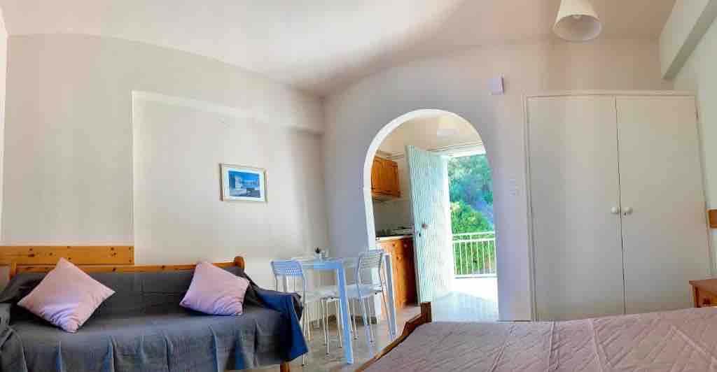 Relaxa't en aquesta habitació tranquil·la i elegant amb un balcó gran i preciós amb una gran vista al mar sobre tota la zona de platja de Askeli. Disposa d'una cuina totalment equipada, televisor intel·ligent i a només 40 metres de la platja més gran de Poros. A prop hi ha un supermercat, una fleca, un lloc de lloguer de bicicletes i restaurants fantàstics. Els estudis Aida es troben a la zona d'Askeli, a l'illa de Poros. És més amunt, cosa que li dona una gran vista de la platja d'Askeli, però també significa que la carretera per arribar-hi és pujada i bastant empinada.