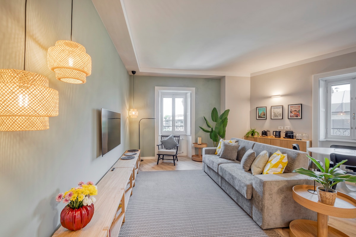 Wake up to the morning light in a historic building in Piazza Giovine Italia. High ceilings create a sense of space, while the living room, with wood paneling and a panoramic balcony, invites you to relax. The modern kitchen and dining area are perfect for intimate dinners, while the bedroom and spacious bathroom offer a serene retreat. A charming oasis where history and comfort meet, for an unforgettable stay.
