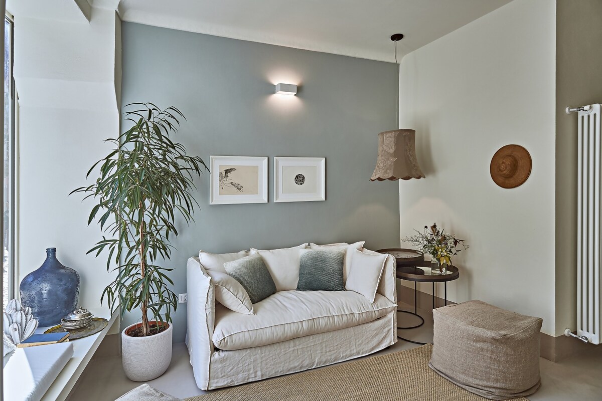 LaQuattro iElefanti és la millor habitació de la casa. Es troba a la segona planta amb una vista doble: a la plaça a través de dos grans finestrals i al riu a través d'un lladre romàntic a l'àtic. Equipat amb un bany ampli amb una dutxa preciosa amb seients interiors. El bany està equipat amb assecador de cabells i una línia de cortesia de qualitat. El paper pintat utilitzat està estrictament imprès amb tintes ecològiques. Està equipat amb totes les comoditats per a una estada en 2, 3 o 4.