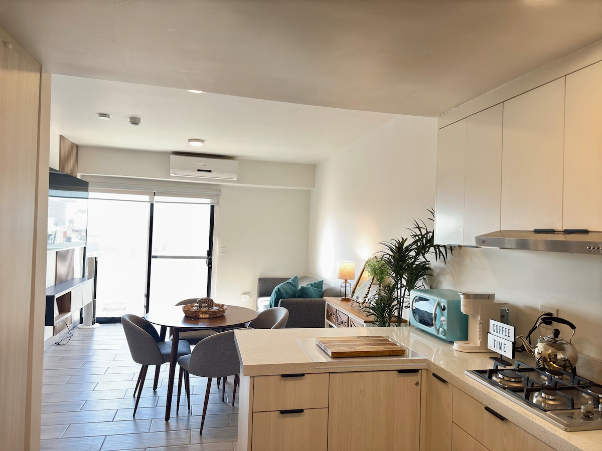 - Pis modern de 2 habitacions a la 5a planta, a pocs minuts de la plaça Cachanilla - Accés a l'ascensor per facilitar-ho. - Accés independent amb teclat intel·ligent - Aparcament per a 2 vehicles. - Aire condicionat a tot l'apartament - Cuina totalment equipada, zona de menjador i espai de bugaderia. - Televisor intel·ligent 4K de 75" amb Netflix, Disney+, Amazon Prime i HBO - Terrassa comunitària al 9è pis amb centre de negocis, barbacoa i zona de saló - Accés al club social: piscina, gimnàs i sala de jocs - Emitim factures MX (Facturamos)