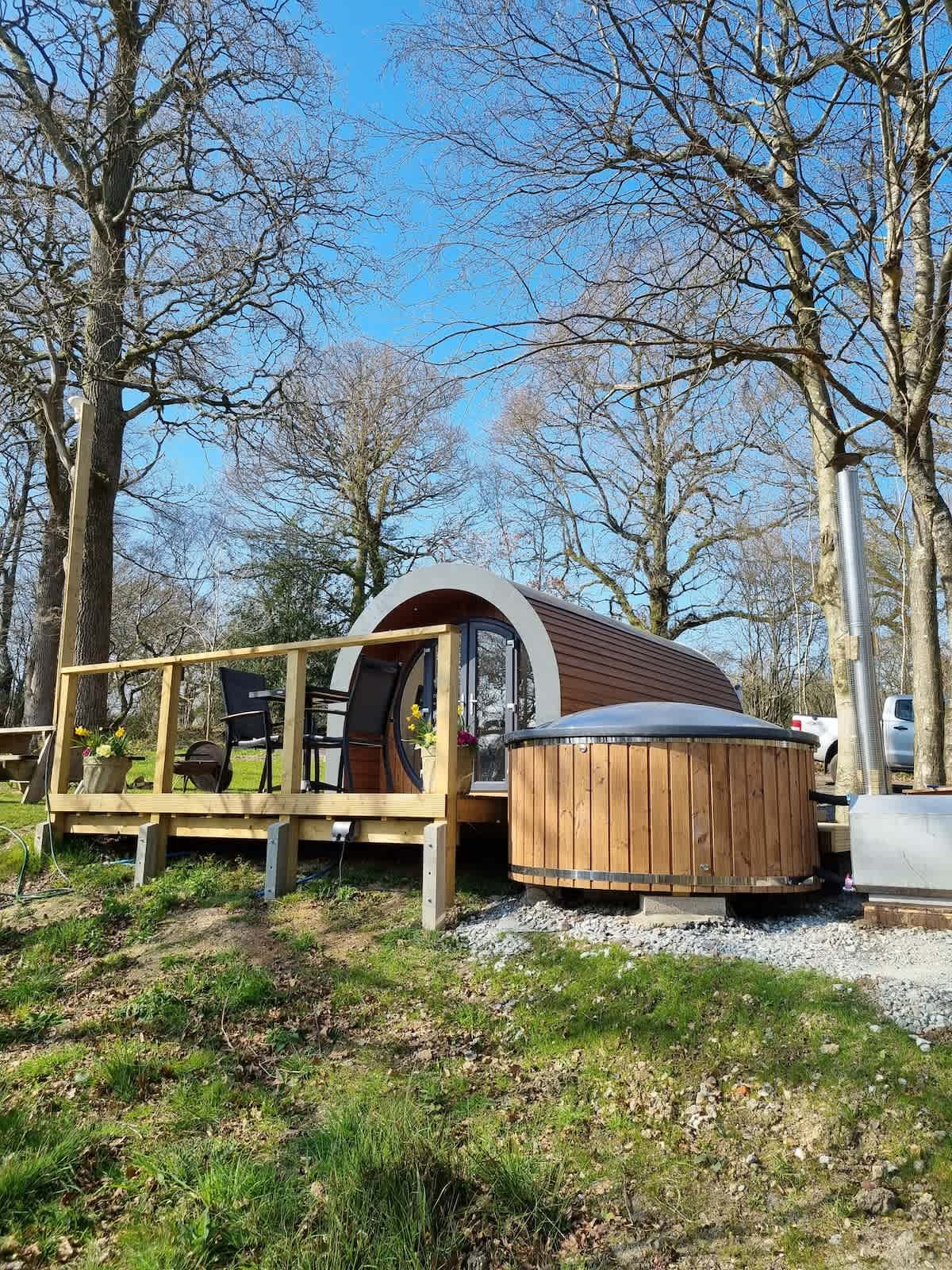 Private Pondside Luxury Glamping Pod with Hot tub
