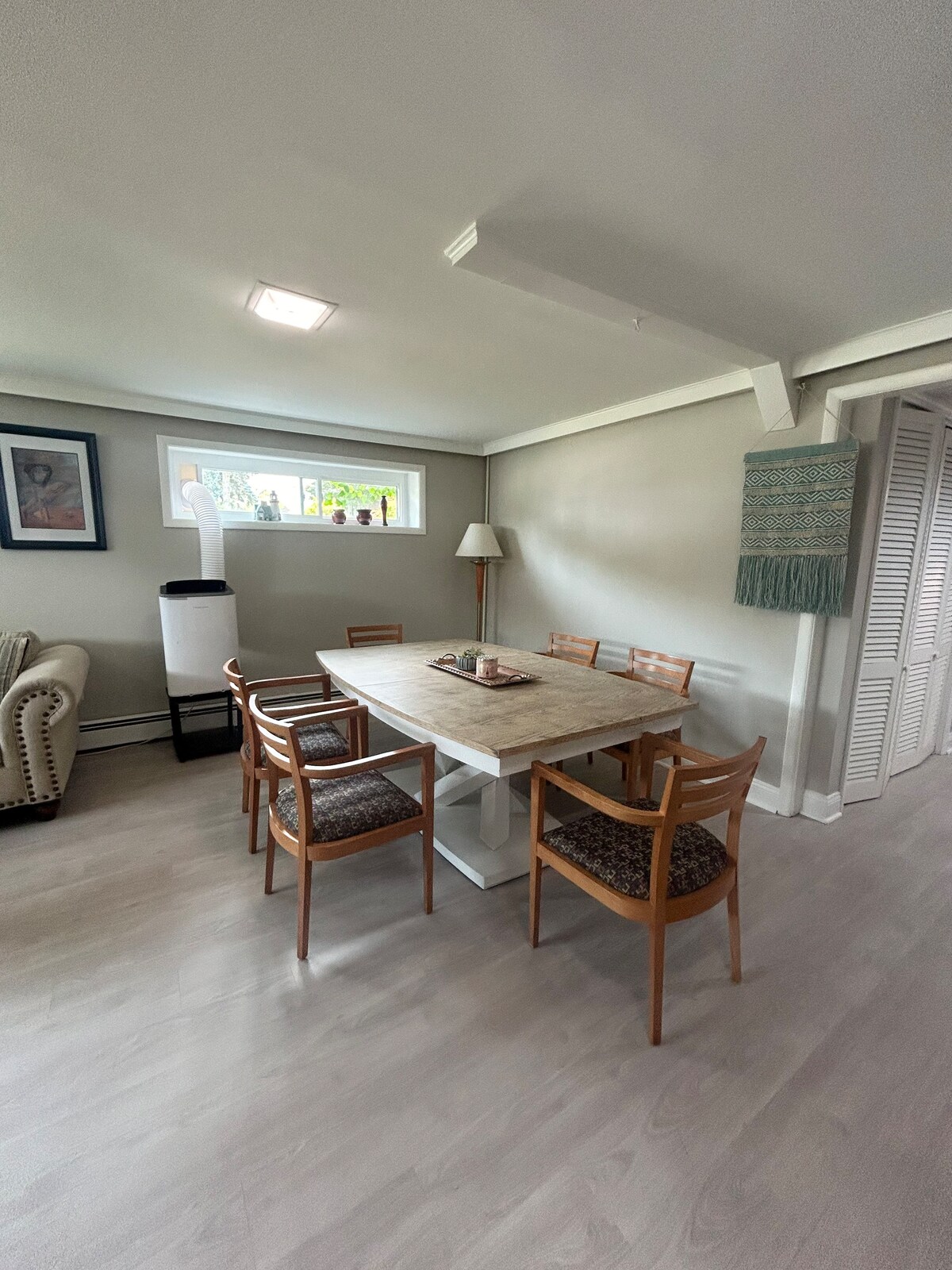 Espai d'estar espaiós i còmode amb dos dormitoris, un amb un llit queen size i l'altre amb un llit de mida completa i un llit individual. La cuina completa inclou nevera, microones i forn/fogons. Taula de menjador gran amb 6 cadires que es poden utilitzar per menjar o per treballar a l'escriptori. La sala d'estar té un sofà còmode, així com una televisió per cable i Netflix. Hi ha wifi! La zona és tranquil·la i relaxant. Hi ha diversos restaurants i supermercats a prop a poca distància a peu.