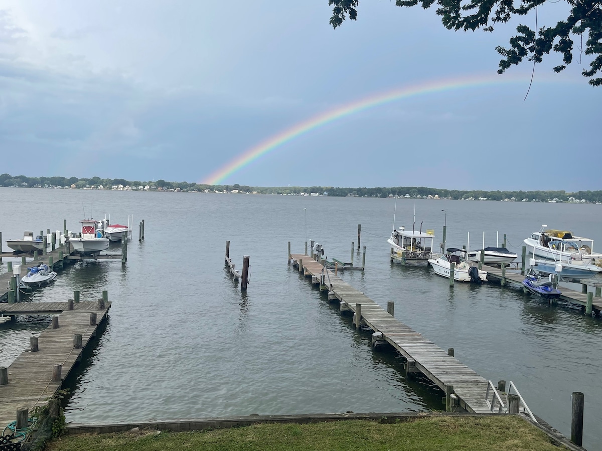 Relaxa't en aquesta encantadora casa de camp costanera de dues plantes, tranquil·la i recentment renovada, amb moll privat! Sortides de sol precioses! Gaudeix dels crancs i peixos frescos de Maryland capturats des del teu moll privat i gaudeix de la pau, la serenitat, la brisa de la badia i l'espai verd vora l'aigua! Connecta amb la natura i explora Meredith Creek, a la badia de Chesapeake, en caiac o en vaixell! Molt NET i nou, amb vistes a l'aigua des del menjador, la sala d'estar, la cuina i el dormitori! A 2,4 quilòmetres de la platja!