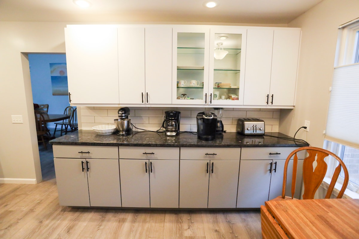 Situat al centre. Barri tranquil. Casa sencera renovada recentment. Bonics 4 dormitoris, tres llits Queen, un amb un llit niu (2 individuals), 2 banys complets, bonics, nous terres de fusta de noguera, rajola a la cuina, catifa al soterrani. Incloïa rentadora i assecadora, televisor gran, wifi ràpid, pàrquing ampli i garatge. Taula i cadires al pati exterior, graelles de gas i carbó El soterrani està parcialment acabat amb dormitori, bany/dutxa i habitació addicional amb finestra d'egressió, per a nadons, treball d'oficina, etc.