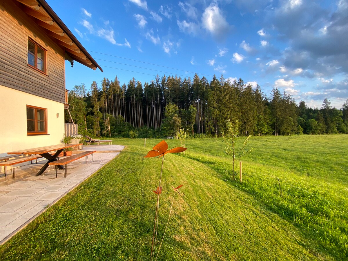 El nostre apartament és molt lluminós, idíl·lic i tranquil i està situat a la planta baixa de la nostra casa i té accés directe a la seva terrassa i al jardí. El nou pis de qualitat està moblat rural i està molt ben equipat. Frasdorf es troba al peu de les muntanyes Chiemgau, enclavades en els suaus turons de les faldilles dels Alps. A només vuit quilòmetres del llac Chiemsee i del llac Simssee. Cèntricament situat entre Munic i Salzburg i lluny de l'enrenou i l'estrès en totes les estacions.