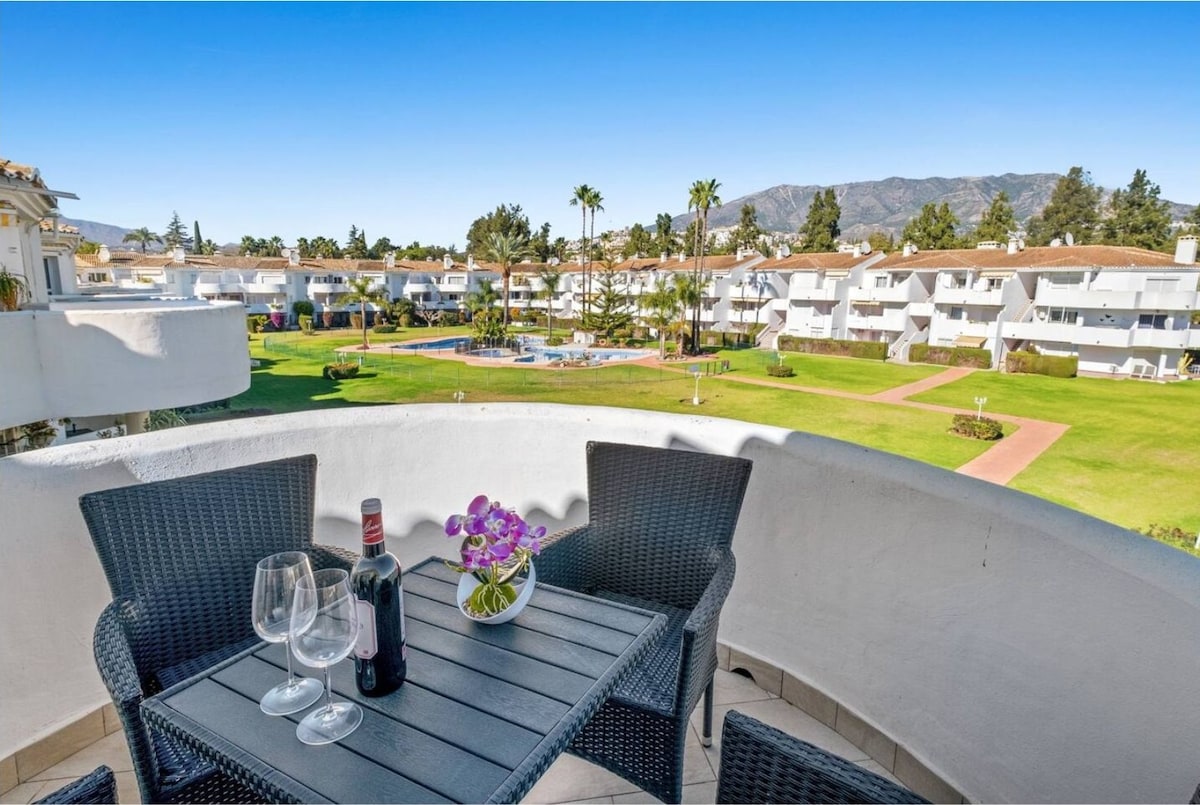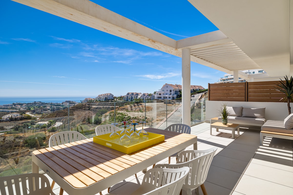 Relaxa't i connecta amb la natura al nostre allotjament amb jardí de palmeres i cítrics a només 2,7 quilòmetres de la platja de Mijas Costa, amb vistes a la muntanya i a prop de camps de golf. Cuina totalment equipada, piscina d'aigua salada i tot el que necessites per passar unes vacances de luxe.