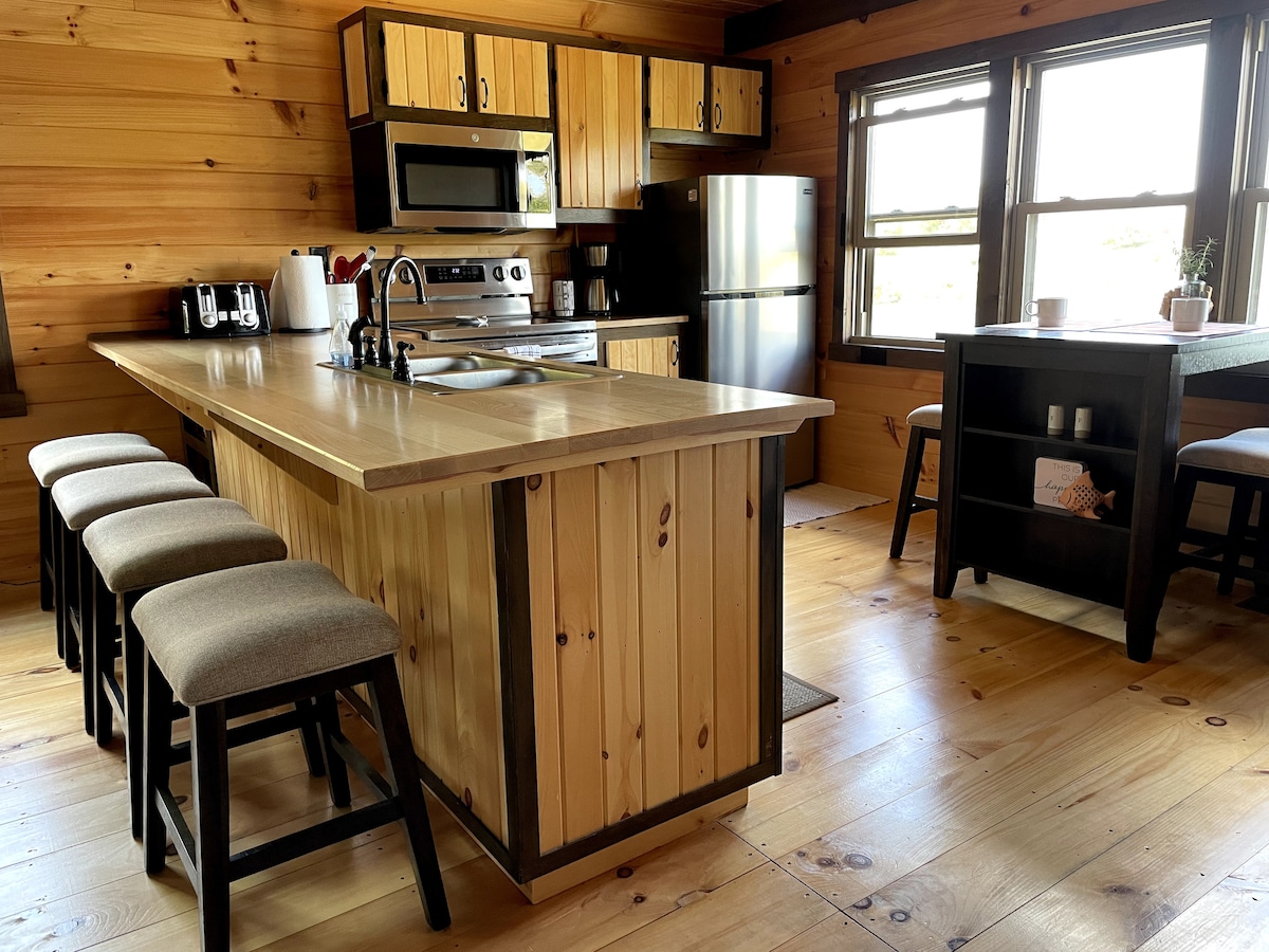 Welcome to Cole Creek Acres, your private lakefront cabin retreat. Set beside an 18-acre spring-fed lake and surrounded by woods and open space, this spacious Amish-built lodge is perfect for families and friends to relax, reconnect, and make memories. Spend your days fishing, kayaking, swimming, or lounging by the water, then unwind in the hot tub at sunset. Comfortably sleeps up to 10 with all the modern amenities, plus a private beach and fire pit, perfect for year-round getaways.