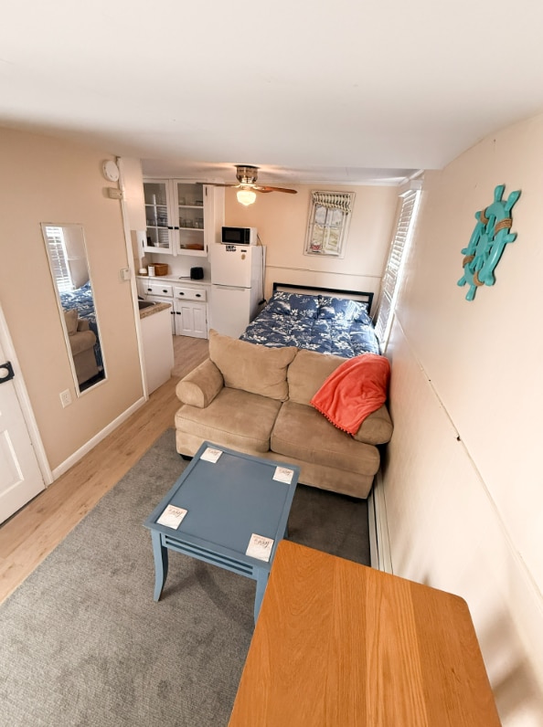 Lloc 100% privat. No compartit. Només el teu grup estarà dins de l'allotjament Aquesta suite té un dormitori, una cuina petita i un bany privat dins d'aquesta acollidora suite. Accés independent Llit «queen size» Cuina de vidre elèctrica per preparar els àpats, sense forn Olles, paelles, coberts, plats, gots Skillet elèctric Nevera amb congelador Microones Cafetera Keurig k-cup Màquina de goteig de Mr. Coffee Torradora Taula de cuina amb 2 cadires Televisor intel·ligent Escriptori i cadira Làmpada Planxa amb taula de planxar Assecador de cabell Tovalloles, llençols Sabó en barra Playpen