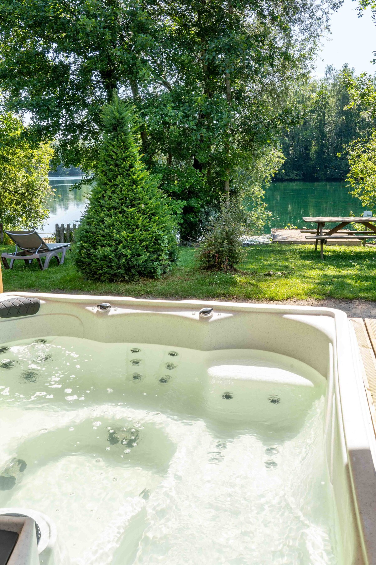 Xalet recent amb SPA privat a l'aire lliure, davant de l'estany, al nostre càmping ***. 2 dormitoris amb dutxa privada, cuina equipada oberta a la sala d'estar i boniques vistes a l'estany, ocells. La nostra finca de 40 hectàrees és ideal per recarregar les piles enmig de la natura amb 5 estanys i bosc. Es permet el parc infantil, la pista de petanca i la pesca. Lloguer de bicicletes, karts a pedals, rosalie, surf de rem. Desconnecta 1 hora de París, a prop de Beauvais i Chantilly