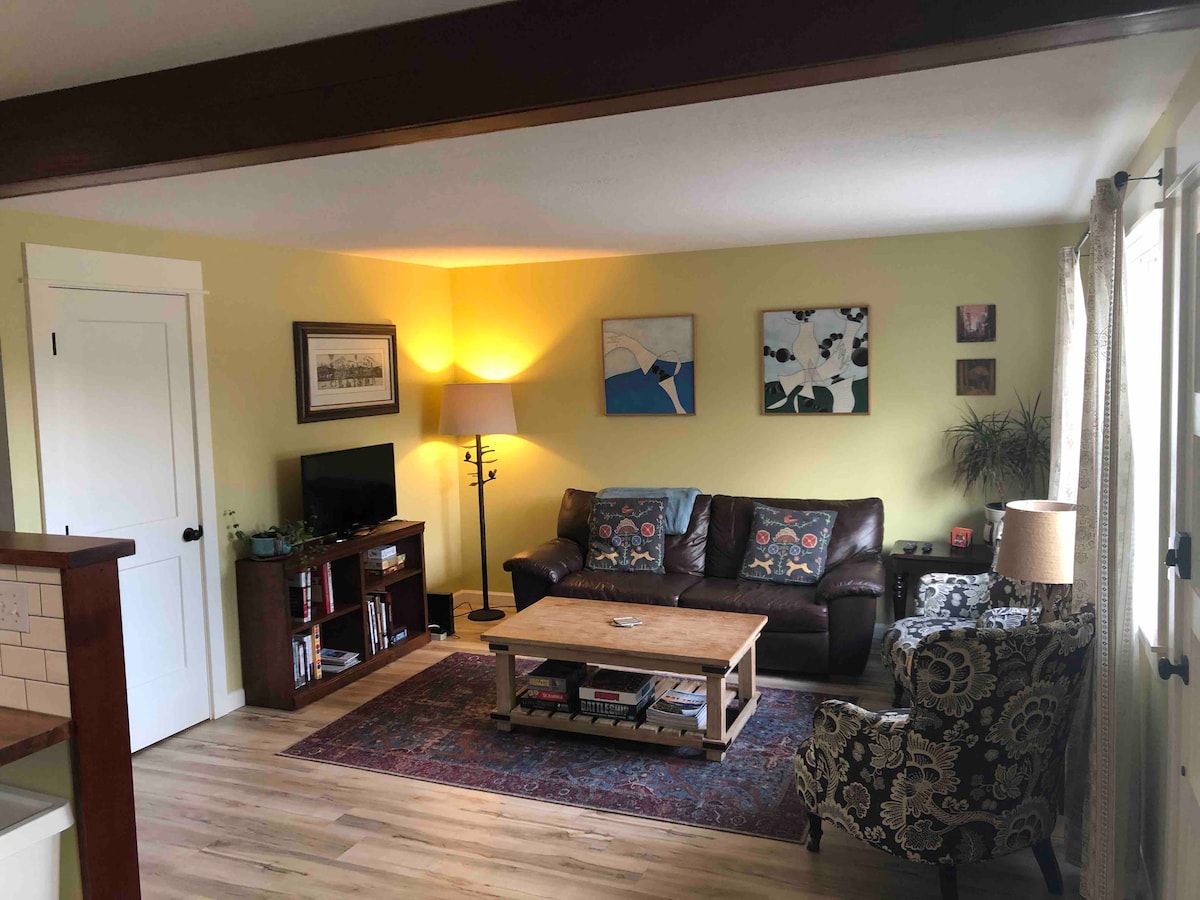 Aquest allotjament còmode i acabat de remodelar es troba en un tranquil carrer residencial del barri d'Ardenwald, a poques illes de la frontera amb Portland a Milwaukie. Està decorat acuradament amb obres d'art originals locals que hem estat seleccionades per nosaltres, també artistes. Els barris de moda de Sellwood i Woodstock estan a poc més d'un quilòmetre de distància, plens de botigues, bars i restaurants de propietat local.