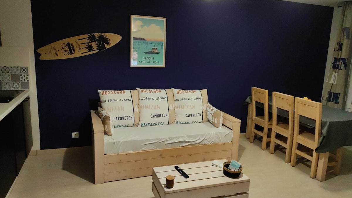 Preciós apartament per a una escapada a la costa de les Landes, a 30 m de la platja, a prop del golf, carrils bici. Et donarem la benvinguda en una residència tranquil·la, amb una vista espectacular sobre l'oceà.