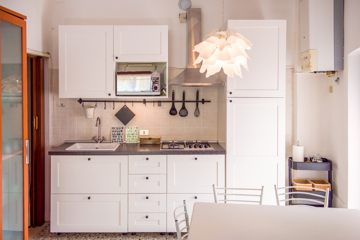 Et donem la benvinguda! Tindràs tot el primer pis (uns 100 metres quadrats) a la teva disposició, amb bany privat al dormitori i una sala d'estar espaiosa. Només compartirem l'entrada i la cuina, ja que vivim a la planta de dalt. Oferim un entorn acollidor i familiar, ideal per a famílies, parelles o viatgers sols que busquen privacitat i comoditat. Siéntete com a casa i gaudeix de la teva estada amb tota la comoditat i tranquil·litat necessàries. A 2 KM del centre de la ciutat, fora de la ZTL A 3 KM de l'estació P. Nuova A 9 KM de l'aeroport VRN