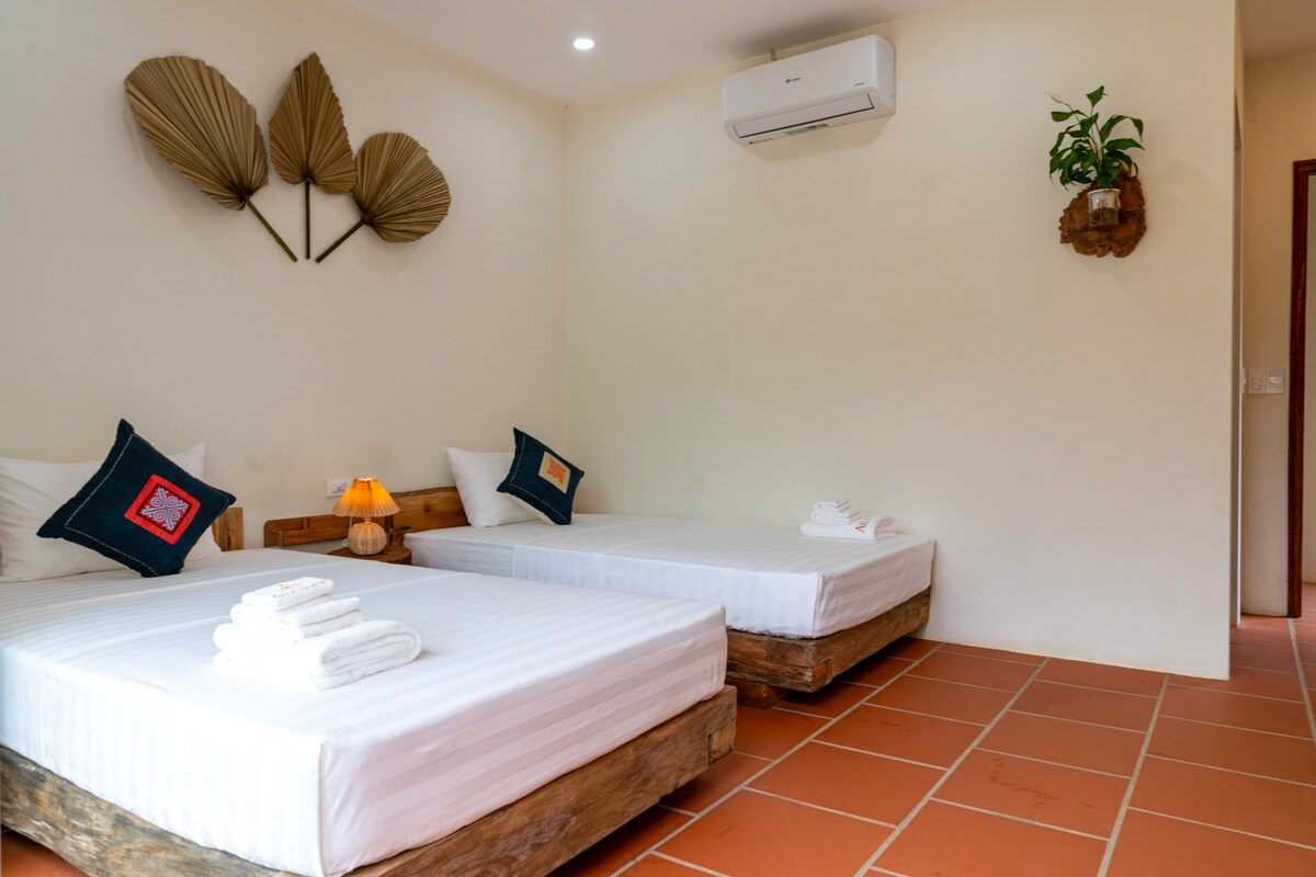 Situat als peus de la serralada de Kun Lin. Les famílies tribals locals Red Dao amb el seu estil de vida tradicional ofereixen una experiència única. Els hostes poden caminar per camps d'arròs en terrassa, explorar rierols clars, cascades salvatges, grans boscos de bambú i antics arbres de te de diversos centenars d'anys. Un paisatge de muntanya preciós. L'esmorzar casolà tradicional està inclòs en el preu. Si vols més informació, no dubtis a consultar el meu compte íntragram bikki_jungle_homestay.