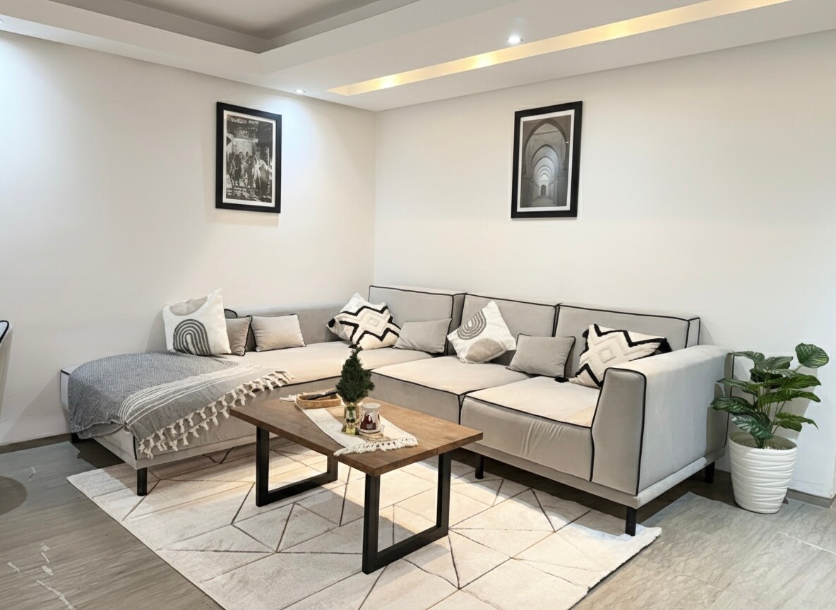 Pis modern i lluminós al cor de Gueliz. Accés amb pany intel·ligent, sala d'estar elegant amb televisor, cuina equipada, 2 dormitoris elegants i un bany de pedra amb dutxa "cascada". A poca distància: 📌 Distàncies des de: • 🕌 Plaça Jemaa el-Fna – 10 min • 🌴 Jardí Majorelle / Museu YSL – 5 min • 🏰 Palau de la Bahia – 15 min • 🕌 Medina / Zocs – 10 min • ✈️ Aeroport de Marràqueix-Menara – 12 min • 🛍️ Carre Eden / Starbucks – 3 minuts • 🍽️ Restaurants i cafeteries a tocar