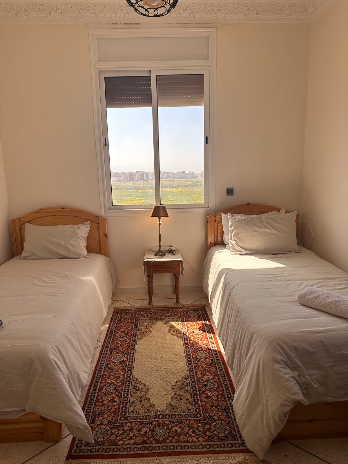 If you have a bigger group you might be interested to check my other listing for apartment on the 1st floor. Dar Yellow is an ocean-view home near Aftas Beach — bright, calm, and full of life. This is a second floor apartment in a 2 floor new build villa with a rooftop. The apartment is a studio type with a terrace and would be ideal for a single person, couple or a couple with a kid :) It has everything you might need for your comfortable stay and more.