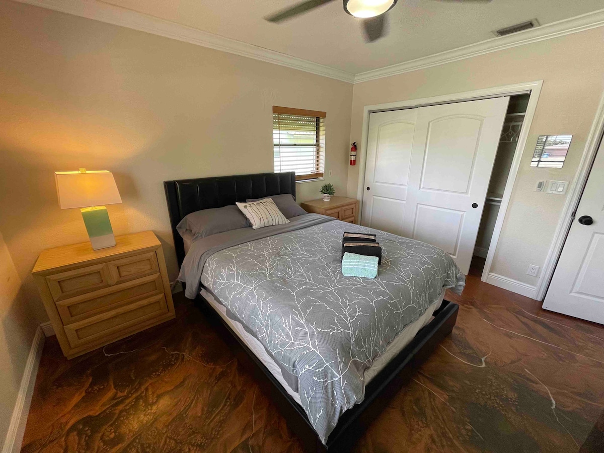 Et donem la benvinguda a un refugi modern al cor de West Boca! Una bonica casa de 2 dormitoris i 3 banys que ofereix una àmplia sala d'estar oberta, cuina totalment equipada, menjador i televisor de pantalla gran. Gaudeix de la privacitat d'un pati tancat totalment i serè i d'aparcament a l'allotjament. Cada dormitori disposa d'un llit «king size» i un bany privat, a més d'un bany complet addicional amb banyera. Barri segur i tranquil, a prop de tot el que puguis necessitar. El camp de golf públic està a l'altre costat del carrer.