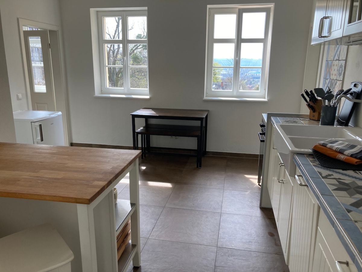 A 5min de l'autopista, a només 20km de Chemnitz, a 60km de Leipzig, a 90km de Dresden i al mig d'un oasi de natura, rierols i estanys, prats i boscos, pau i el so relaxant de l'aigua. L'apartament està situat al mig del bosc! Si us plau, no ens puntuïs després amb 4 o menys estrelles a causa de la ubicació idíl·lica i tranquil·la.