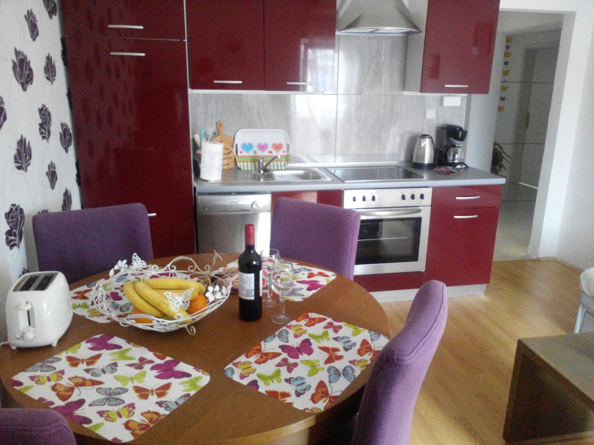 Nou apartament funcional i amb aire condicionat dins d'una casa familiar a la primera planta, en una ubicació tranquil·la a prop dels passejos forestals, no gaire lluny del mar i del centre de la ciutat de Rijeka. El pis consta de dos dormitoris,un amb llit doble i l'altre amb dos llits individuals, tots dos amb accés a un balcó assolellat. A la sala d'estar, el llit de tres places també serveix com a llit doble addicional, la cuina i la sala d'estar estan formades per un espai i un bany preciós.