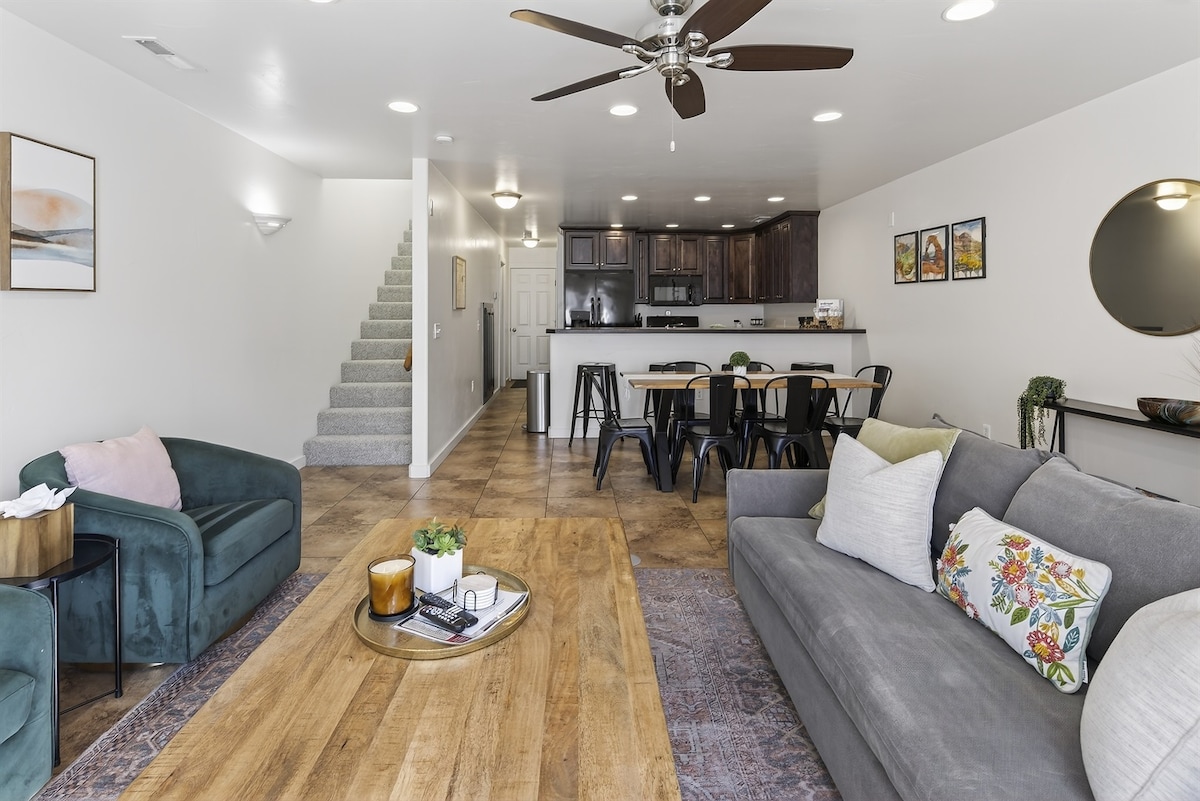 Et sentiràs com a casa durant la teva propera escapada a Moab! Vine a allotjar-te en aquesta unitat acabada de renovar, ben moblada i decorada amb bon gust amb un dormitori principal amb capacitat per a 8 hostes còmodament i gaudeix d'una casa còmoda per a totes les teves aventures Moab. Amb unes vistes INCREÏBLES de les muntanyes de La Sal, és perfecte per a una família o un grup reduït per carregar i relaxar-se. Gaudeix de relaxar-te al pati amb una zona per a fogueres i una barbacoa després d'un dia d'aventura a Moab. A només 2 portes de la piscina i la banyera d'hidromassatge!