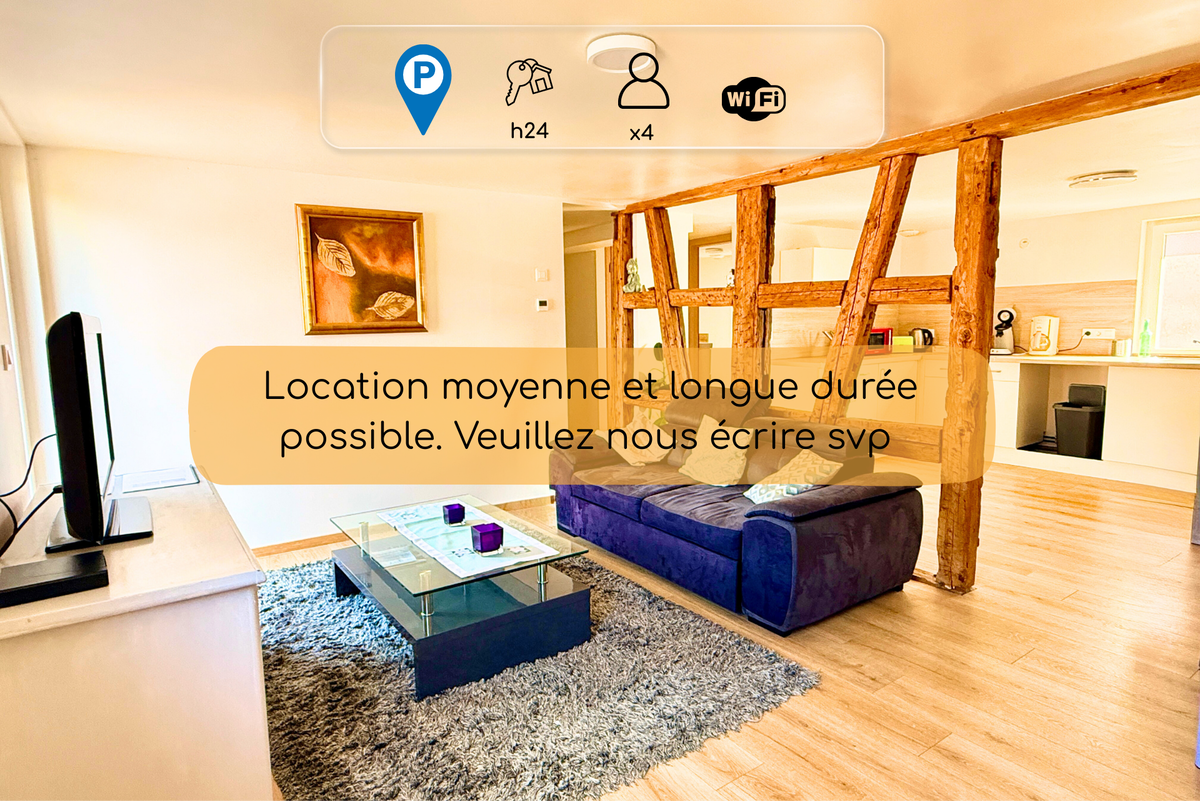 Aquest bonic apartament de 55 m2, totalment reformat amb un esperit capbussador, està situat al centre de la ciutat de Molsheim, a l'inici de la Ruta del Vi. Si vols tornar a connectar amb la natura, pots accedir a diversos camins de vinya, camins forestals o simplement passejar pels carrils bici. A l'entrada de la ciutat trobaràs un gran complex de jocs, botigues i restaurants (bowling- cinema-mini golf..) Molsheim és l'equilibri entre natura i cultura.
