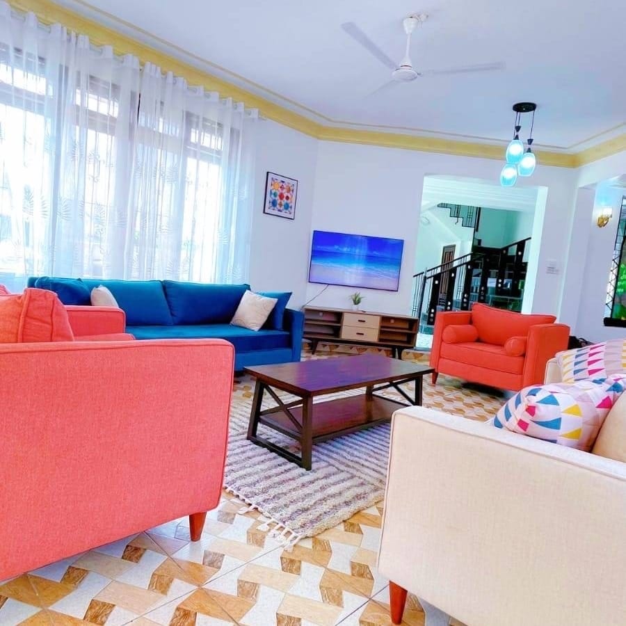 Kay's Residence és una vil·la privada acollidora i luxosa situada al cor de Bamburi, Mombasa, que ofereix una barreja perfecta de comoditat acollidora i comoditat moderna. Els hostes gaudeixen de: Privacitat ✅exclusiva: la vil·la sencera per a tu, sense espais compartits. Jardí privat✅ exuberant ✅Ambient càlid, acollidor i ✅casolà: interiors decorats amb cura que et fan sentir com a casa. ✅ Ubicació privilegiada: a pocs minuts de Pirates Beach/Marine Park, botigues, restaurants i atraccions importants, però amagat del soroll.