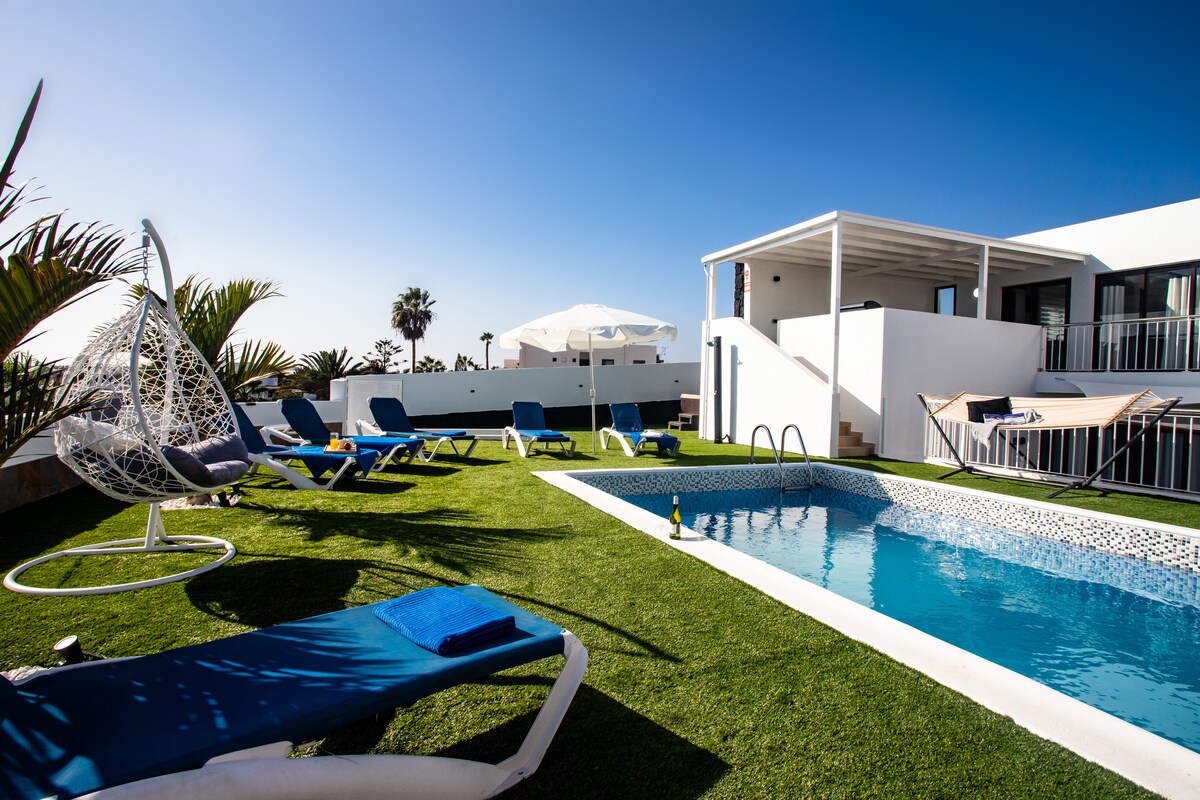 VIL·LA PER A ADULTS (a partir de 24 anys) No s'admeten animals de companyia ni nens Aquesta meravellosa vil·la, completament renovada, dissenyada per complir els estàndards més alts, està situada en una ubicació meravellosament tranquil·la a Playa Blanca. A pocs metres del mar, aquesta vil·la de gran qualitat, moblada amb luxositat i amb cura, ofereix tot el que el teu cor desitja. Disposa de piscina climatitzada i una gran banyera d'hidromassatge, així com d'accés a internet per fibra òptica. Té capacitat per a un màxim de quatre persones.
