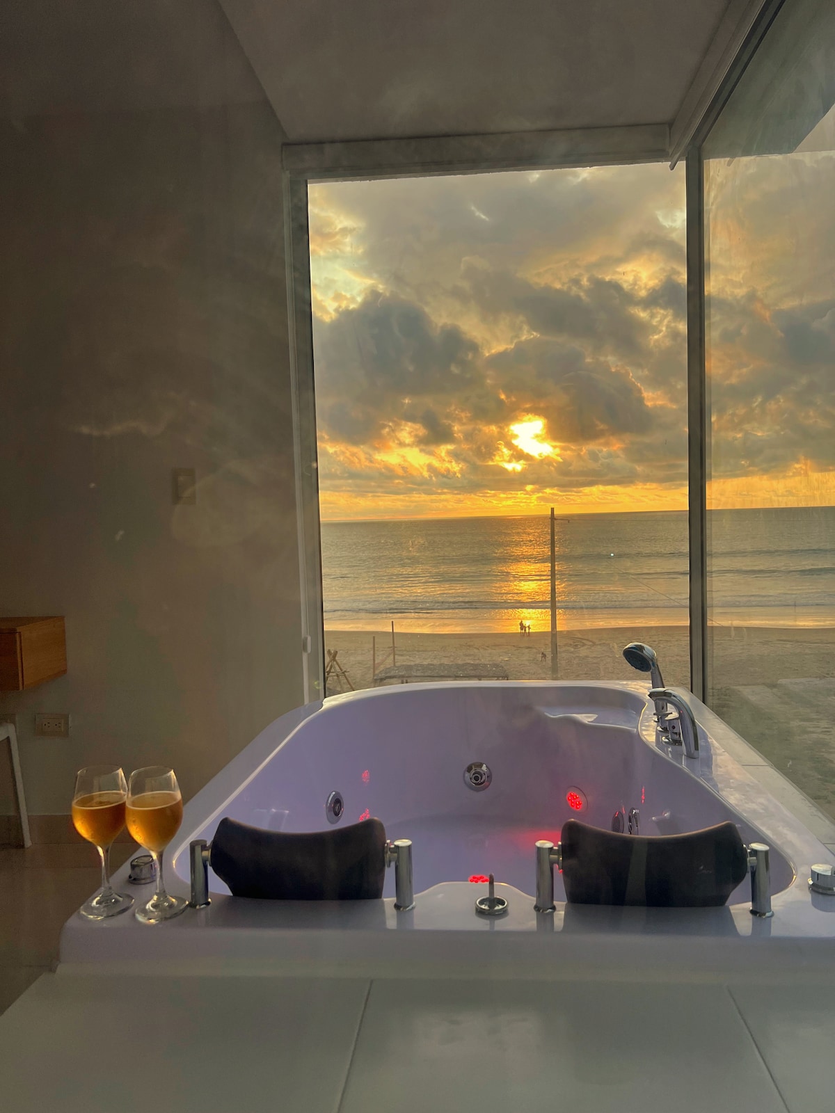 🌊✨ Refugio exclusivo frente al mar – Suit Premium ✨🌊 En Montañita, te espera un espacio íntimo creado para dos. Cama King, jacuzzi privado, baño privado, cocina equipada y balcón con vista al mar. La brisa, la luz natural y los atardeceres dorados envuelven cada momento en una atmósfera romántica, elegante y profundamente especial. Despierta con la luz natural entrando por amplios ventanales de vidrio, siente la brisa marina y contempla el horizonte desde tu balcón privado 🌅🌊