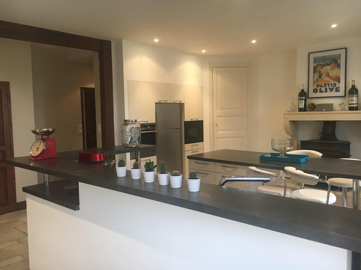 Combinant moderna i antiga, aquesta casa combina funcionalitat i romanticisme. La renovació acaba de finalitzar, així que l'equipament és nou: televisor, electrodomèstics, wifi i un piano de cuina per als amateurs. Estem al peu de les vinyes a prop de Viré, Clessé, Lugny i el bressol de Chardonnay, on estaré encantat de compartir la meva passió. Molt fàcil accés a través de la D906, sortida de l'autopista a 15 minuts, aparcament davant de la casa.