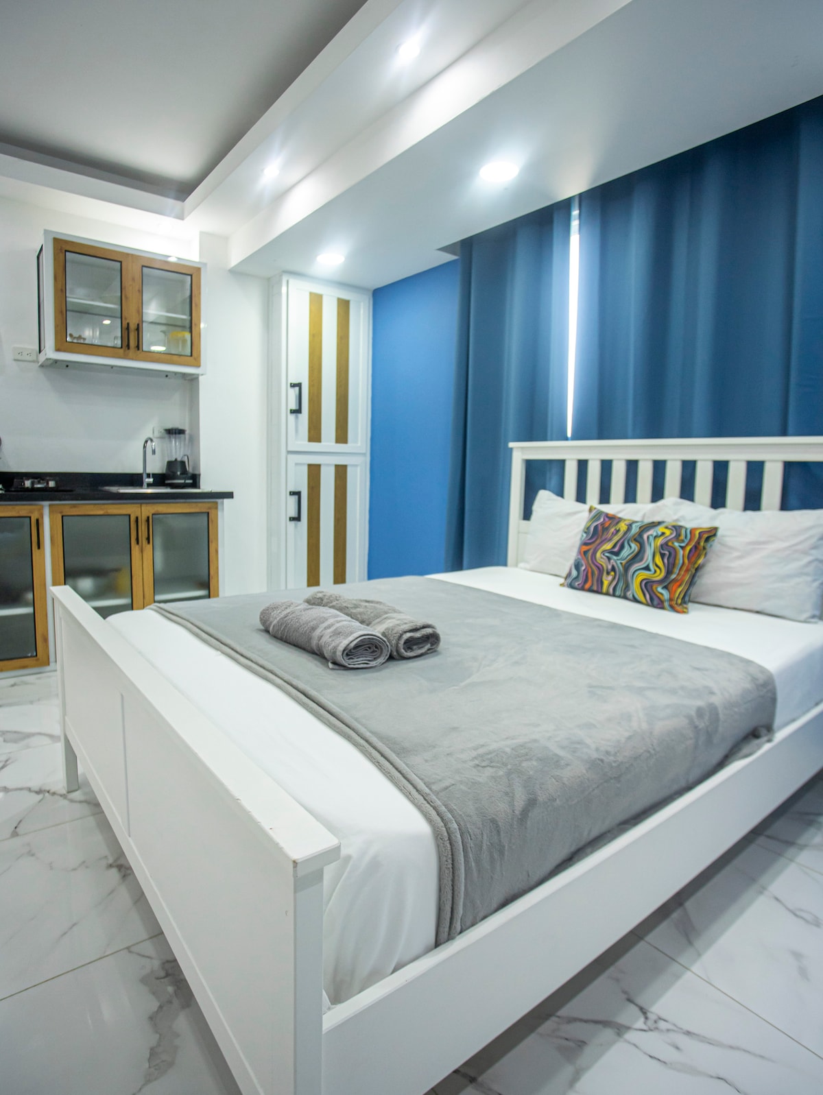 Habitación acogedora y tranquila ubicada en nuestro aparta-hotel frente a la playa de Juan Dolio, diseñada para un descanso relajante. Cuenta con aire acondicionado y WiFi, ofreciendo un ambiente cómodo y funcional. Ideal para familias, parejas o grupos de amigos que buscan privacidad, confort y una ubicación privilegiada frente al mar, con fácil acceso a la playa y espacios pensados para disfrutar una estadía agradable y sin complicaciones.