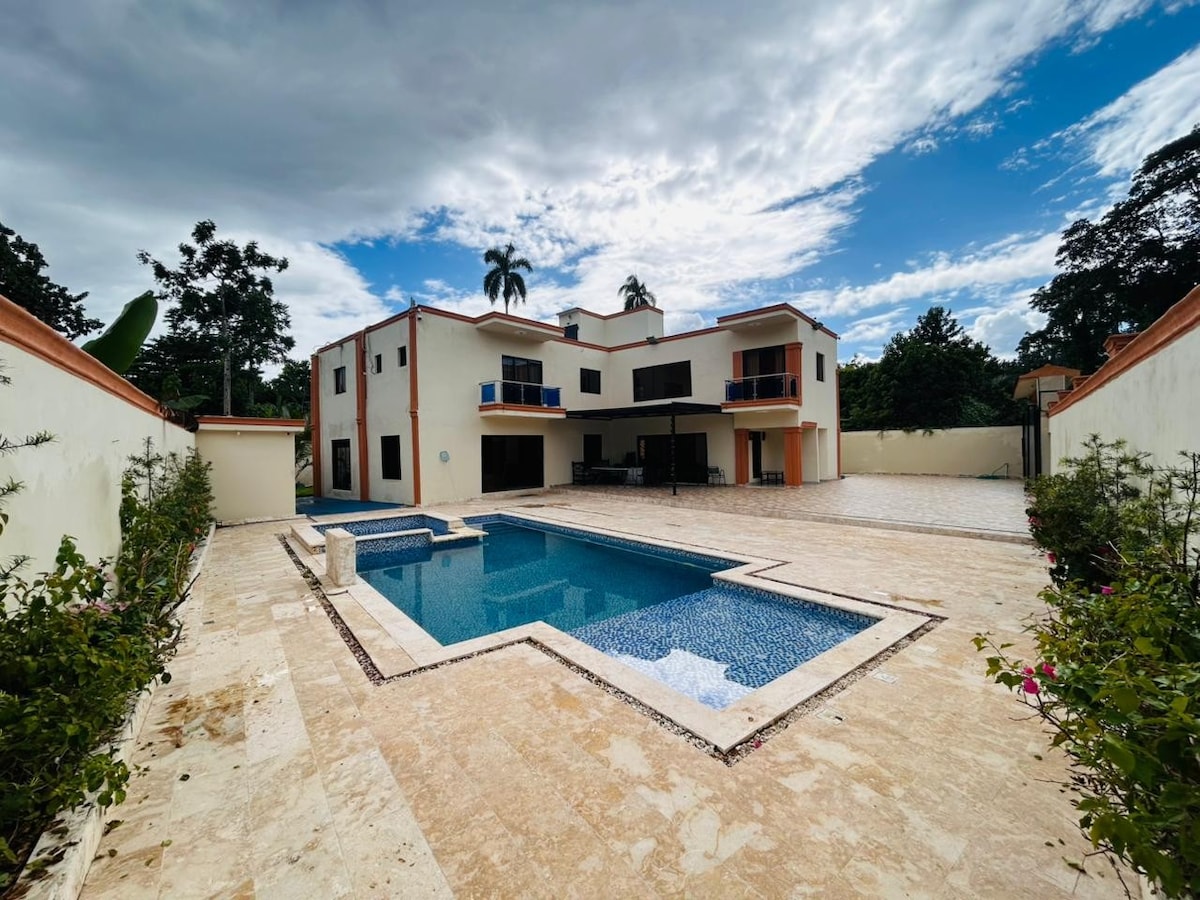 Escape to tranquility at this luxurious two-story villa in Km. 22 on Autopista Duarte. Up to 20 guests, this villa offers 4 spacious Bedrooms (each with a balcony), 4.5 baths, a living room, dining area, fully equipped kitchen, and an expansive open terrace. Enjoy an outdoor kitchen with a brick barbecue, a pool, gazebo, and exclusive access to the Arroyo Lajas River. Just 25 minutes from Santo Domingo city and 60 minutes from the airport, this is the ideal getaway. Your peaceful oasis awaits!
