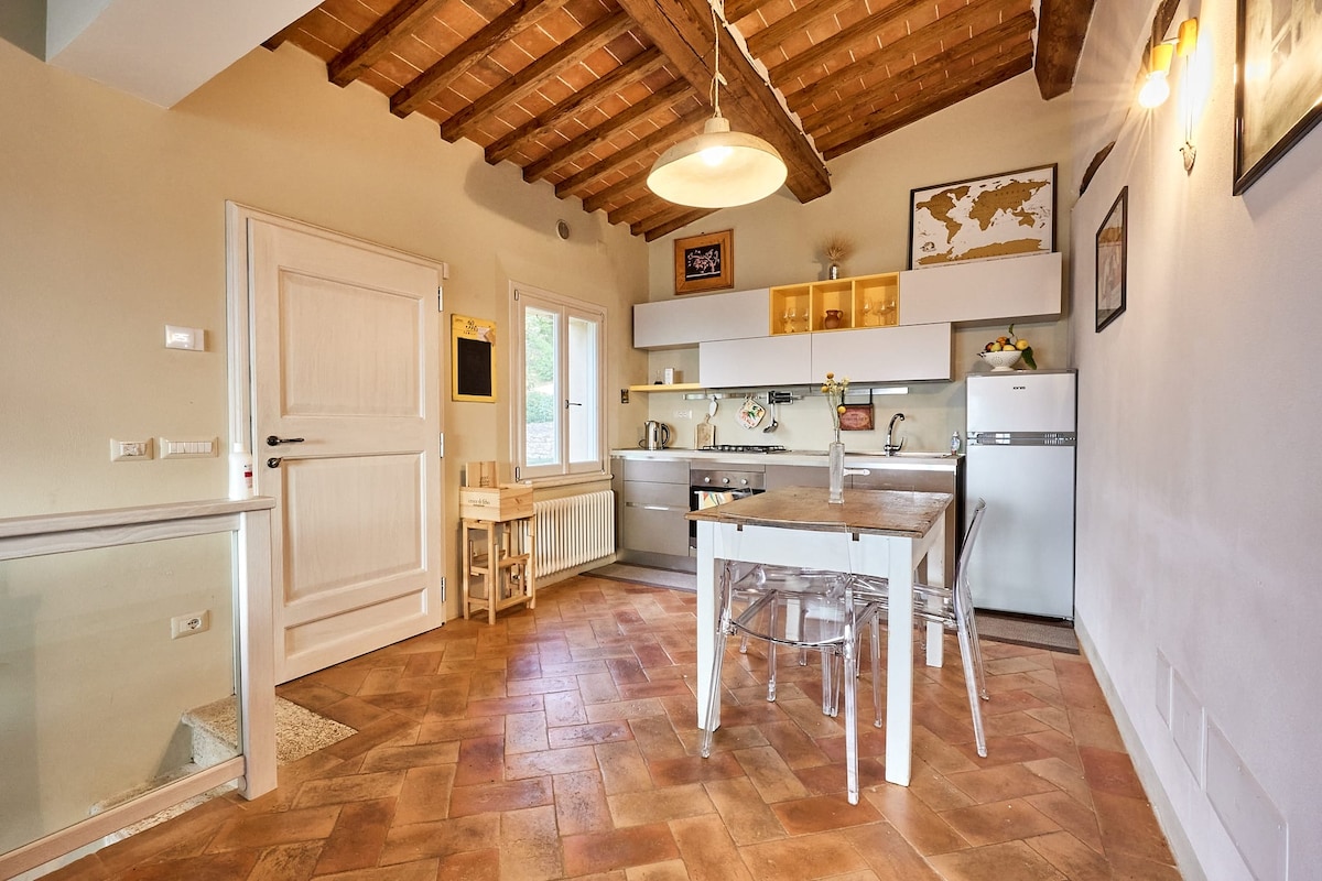 El 2023, el meu fill Guglielmo i jo vam decidir restaurar l'antic oratori d'una església del segle XVII creant un pis de dues plantes: a la planta superior tenim 2 dormitoris equipats amb aire condicionat i 2 banys amb dutxa; a la planta baixa una sala d'estar espaiosa amb estèreo. Hi ha una taula disponible a l'exterior amb una vista fantàstica i un jardí agradable a 50 metres de distància on gaudir d'una degustació de vins privada o una barbacoa per a tots els hostes dels nostres 4 apartaments, després de les 19:00 si es reserva amb molta antelació Aparcament gratuït gran a 100 m