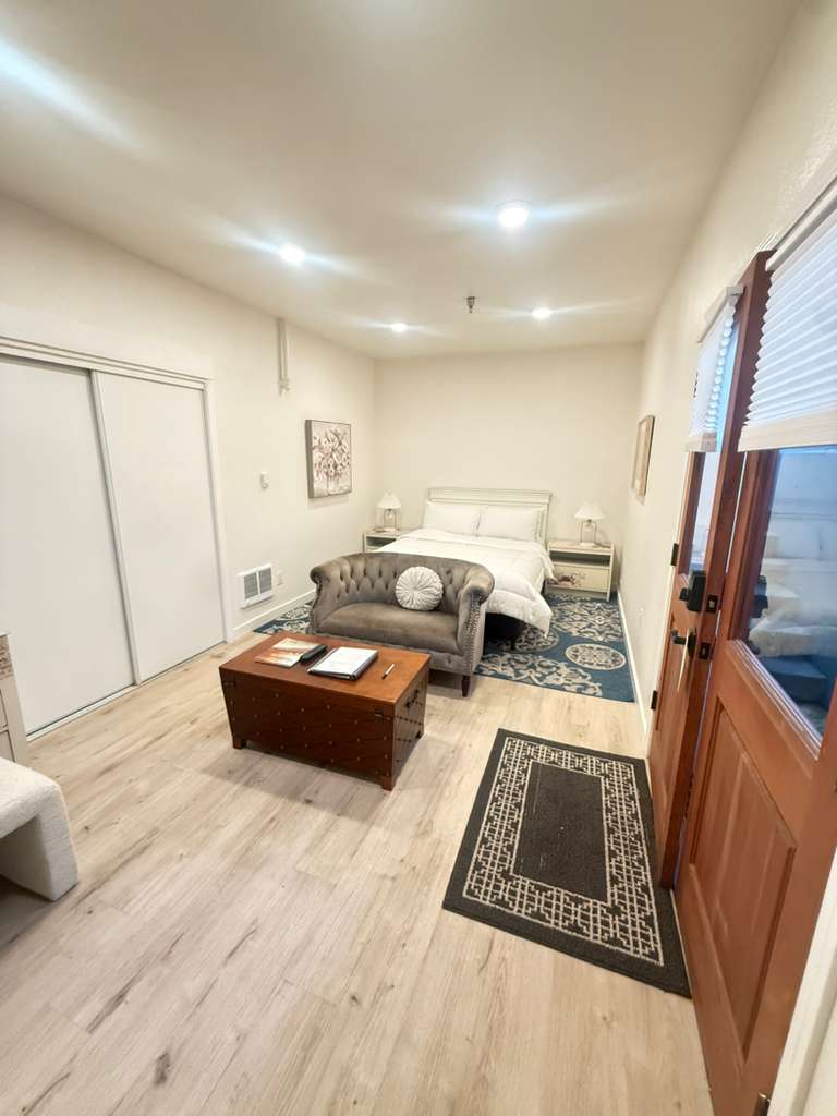 Una espaiosa suite de dos dormitoris amb llit king size a la planta baixa de Chateau Coralini, que ofereix privacitat, comoditat i característiques d'accessibilitat ben pensades, a pocs minuts de Monterey i Carmel. Amb dos dormitoris amb llits «king size», dos banys complets, una sala d'estar privada i comoditats privades, aquesta suite és ideal per a famílies, parelles i hostes que prefereixen un accés fàcil i una comoditat addicional.