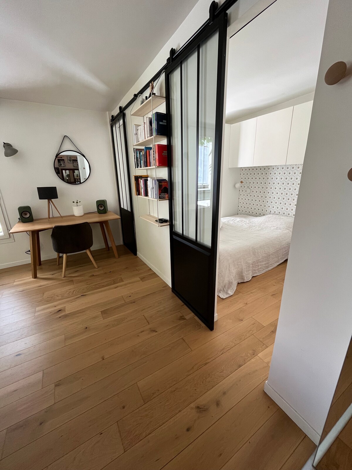 Un pis lluminós i tranquil amagat en un dels carrerons de Montmartre, a pocs minuts del Sacré-Cœur i de la Place du Tertre. El pis és ple de llum i totalment equipat: un llit «king-size», rentadora, tovalloles, assecador… Tot el que necessites per instal·lar-t'hi sense haver de pensar-hi. És un lloc on pots anar després de caminar per la ciutat i, si et ve de gust, quedar-t’hi una mica més del que havies previst.