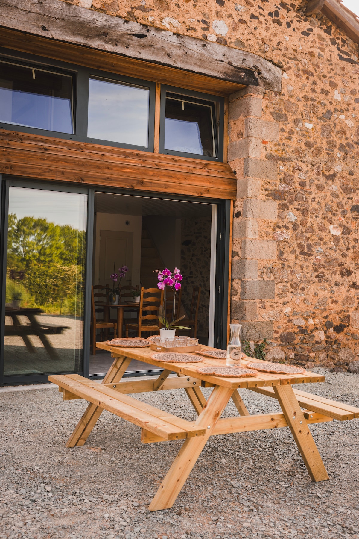 Compliment del protocol de neteja avançada establert per Airbnb Casa rural de 130 m2 distribuïda en un graner antic distribuït en 2 nivells. Planta baixa: sala d'estar amb cuina petita i zona d'estar. Vàter independent. 1 dormitori amb bany privat (+ rentadora). Planta: 1 dormitori amb bany privat + dormitori per a 2 nens. Vàter independent. Exterior: pati anglès de 93 m2 amb mobles de jardí + barbacoa + para-sol + prendre el sol. Espai verd sense tanca accessible tant al costat de la caseta com al costat de la casa.