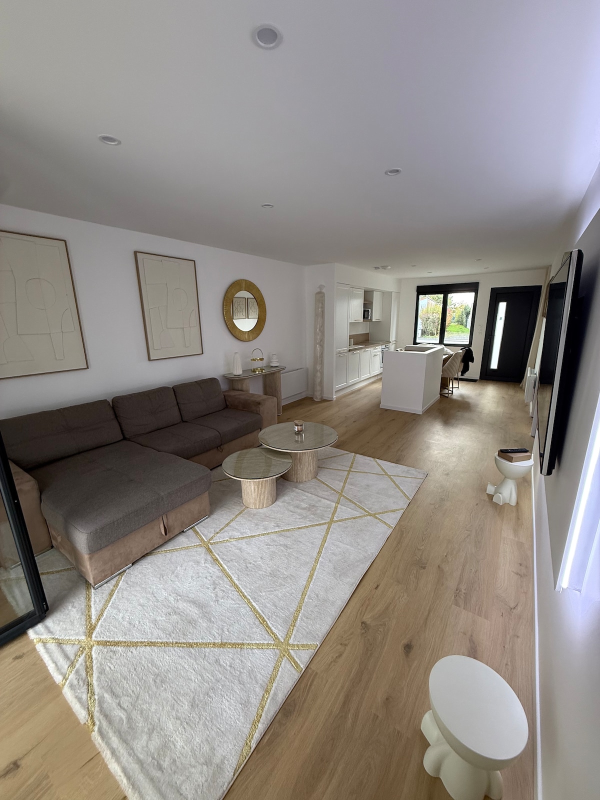 gite neuf en centre bourg de saint martin des tilleuls a 15 min du puy du fou, aménagée avec gout pour vous y sentir comme chez vous ! il est composé: - 3 chambres: Literies haut de gamme hôtellerie 1 grande chambre avec lit 160/200 + lit bébé 1 chambre avec lit 160/200 1 chambre avec lit 90/200 + chauffeuse -1 cuisine tout équipée -salon -séjour 1 grande cour fermé +garage options draps 10 euros par lit, linge de toilette 5 euros /pers Les chiens interdits dans les chambres à l'étage!