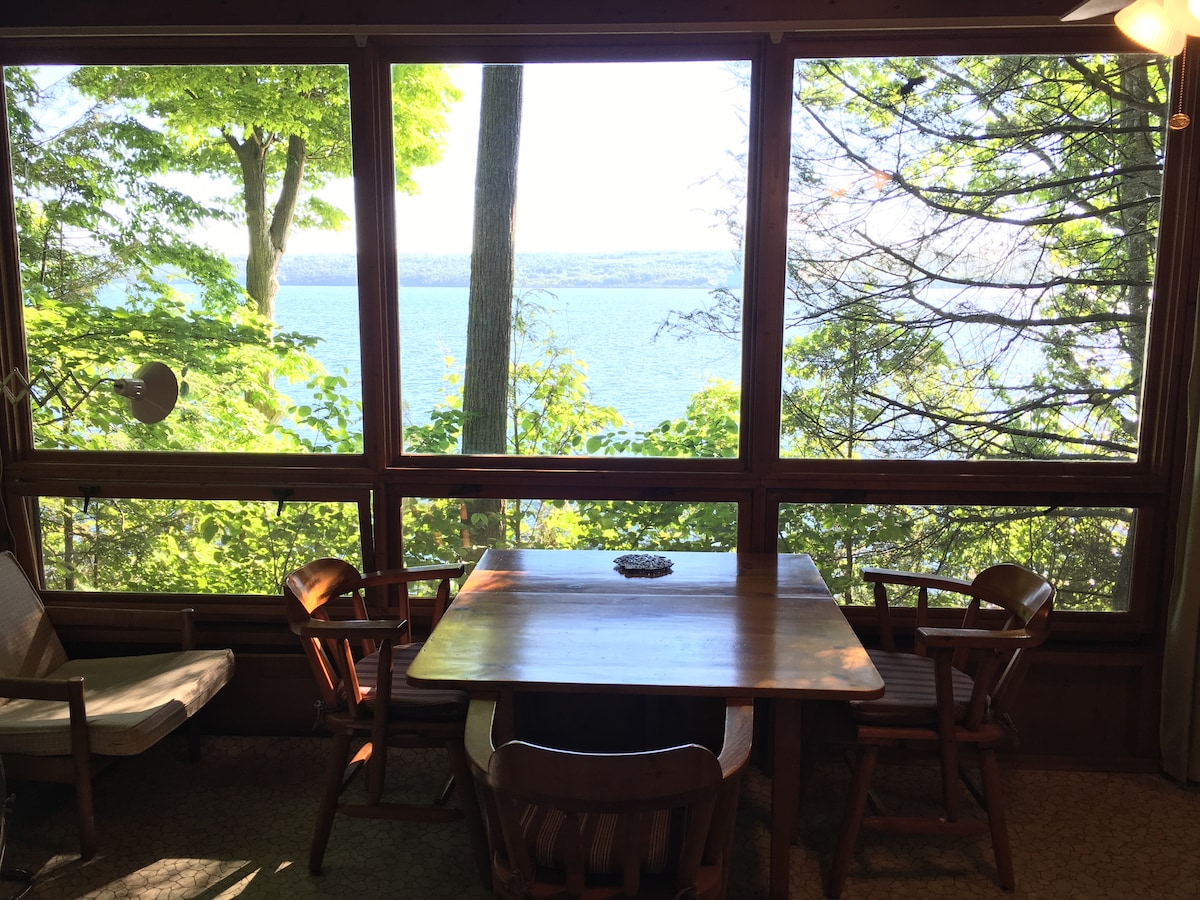 Escape to this private 2 bedroom rustic cabin on the west shore of Cayuga Lake. Enjoy incredible views from the living room or soak up the sun on the dock. Appreciate a true happy hour on the screened-in porch or take libations on the lawn above the Lake. We provide linens, blankets, pillows, bath towels and kitchen towels. Disinfectant wipes provided & clean mattress covers provided. Taughannock falls State Park is just 6 miles south, along with several great wineries nearby & local town.