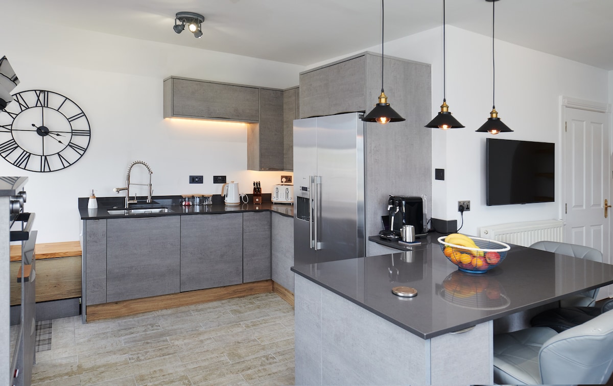 Gran edifici modern i modern a la vora de Huntly, zona tranquil·la amb veïns familiars a prop. Zona ideal per estar a prop de l'estació de tren i no molt lluny del centre de la ciutat, a 10-15 minuts a peu. Gran sala d'estar i cuina oberta amb zona de TV, WiFi i molt aparcament. Banyera d'hidromassatge a l'aire lliure, jardí i zona de coberta - noves i fotos a seguir un cop acabades. Perfecte per a unes nits!!