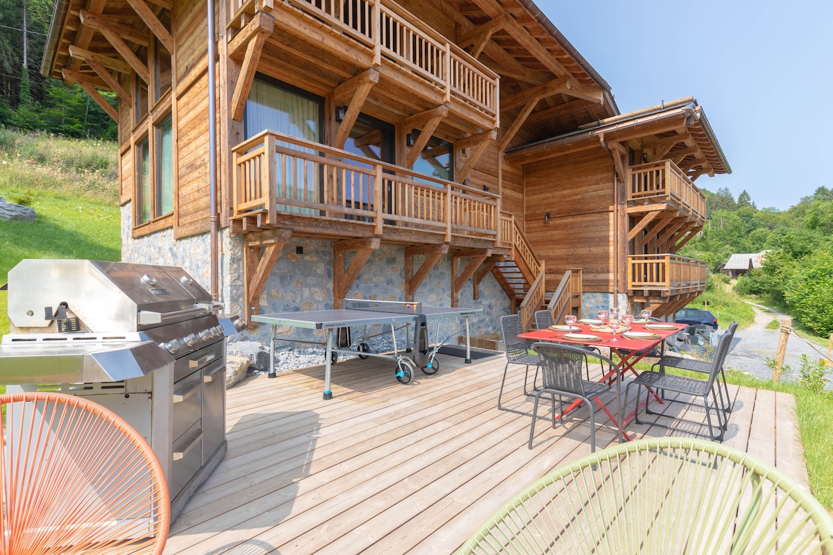 Planta baixa del jardí d'un autèntic xalet alpí situat al cor d'una vall conservada a prop de les estacions de Gets i Praz de Lys. T'agrairàs la cara acollidora de l'allotjament, la natura dels voltants i l'oportunitat de gaudir plenament de les activitats a l'aire lliure al voltant del xalet amb la família o els amics. També tindràs accés privat al bany nòrdic (opcional per a estades curtes de menys d'una setmana).